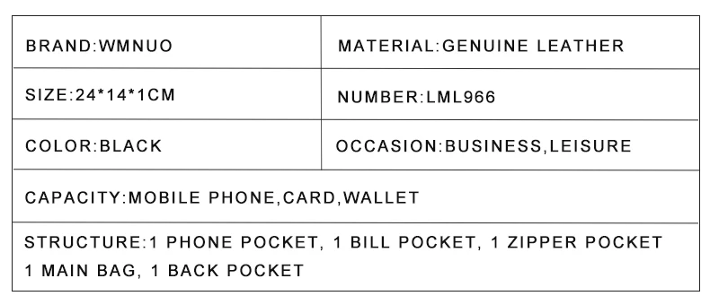 Наименование товара: Wmnuo, 100% натуральная кожа, женская сумка-мессенджер, известный бренд, женская сумка на плечо, конверт, клатч, сумка через плечо, кошелек для женщин Материал: Высококачественная коровья натуральная кожа Размер: 24*14*1 см Вместимость: мобильный телефон, карта, кошелек, косметика Структура: мобильный телефон, карман на молнии, Основная сумка Цвет: как на картинке Примечание: 1. В связи с использованием различных методов измерения, возможны отклонения в размере от 1 до 3 см вследствие измерений вручную.(1 дюйм = 2,54 см; 1 см = 0,39 дюйма) 2. Из-за различных настроек монитора цвет изображения может немного отличаться от фактического цвета продукта.
