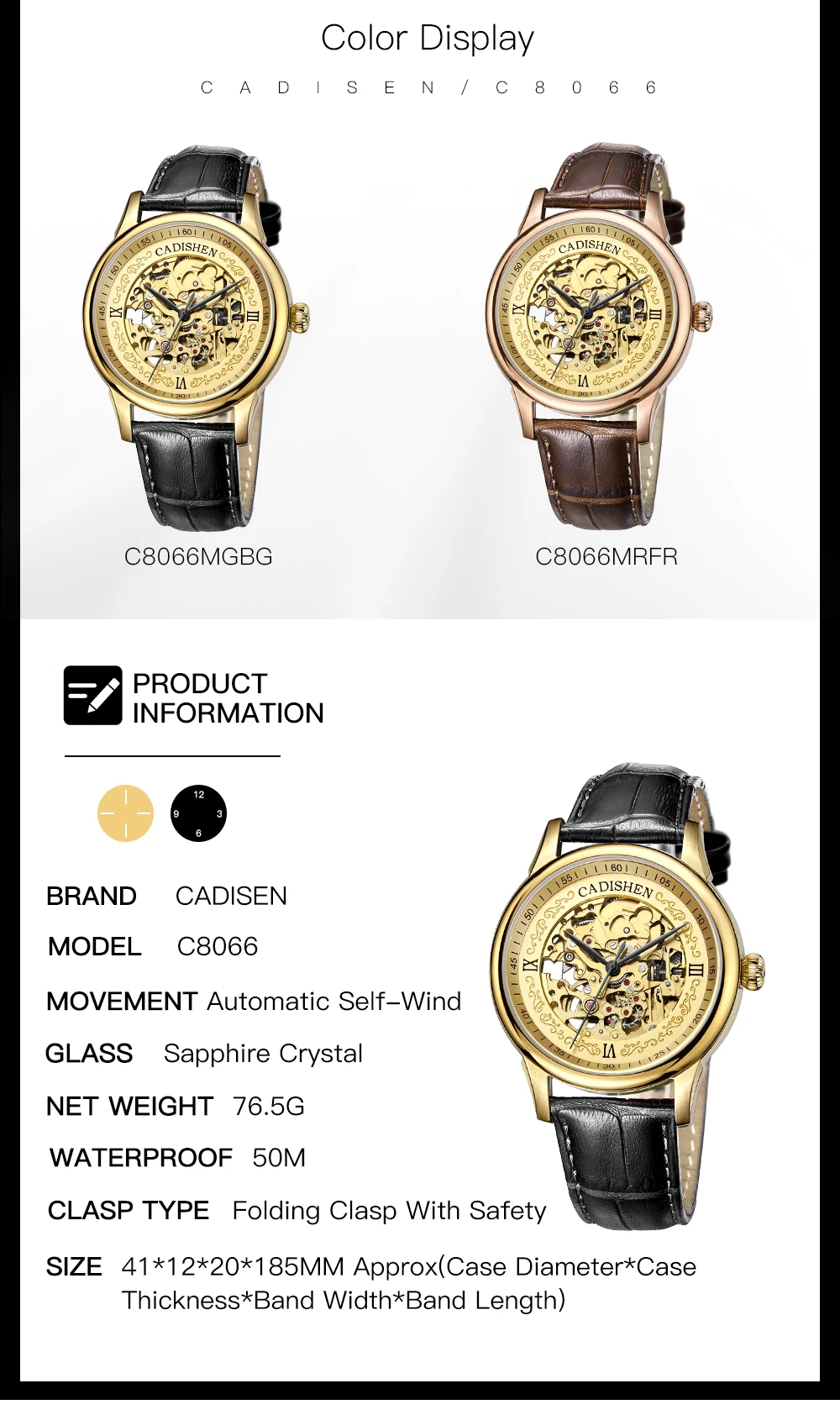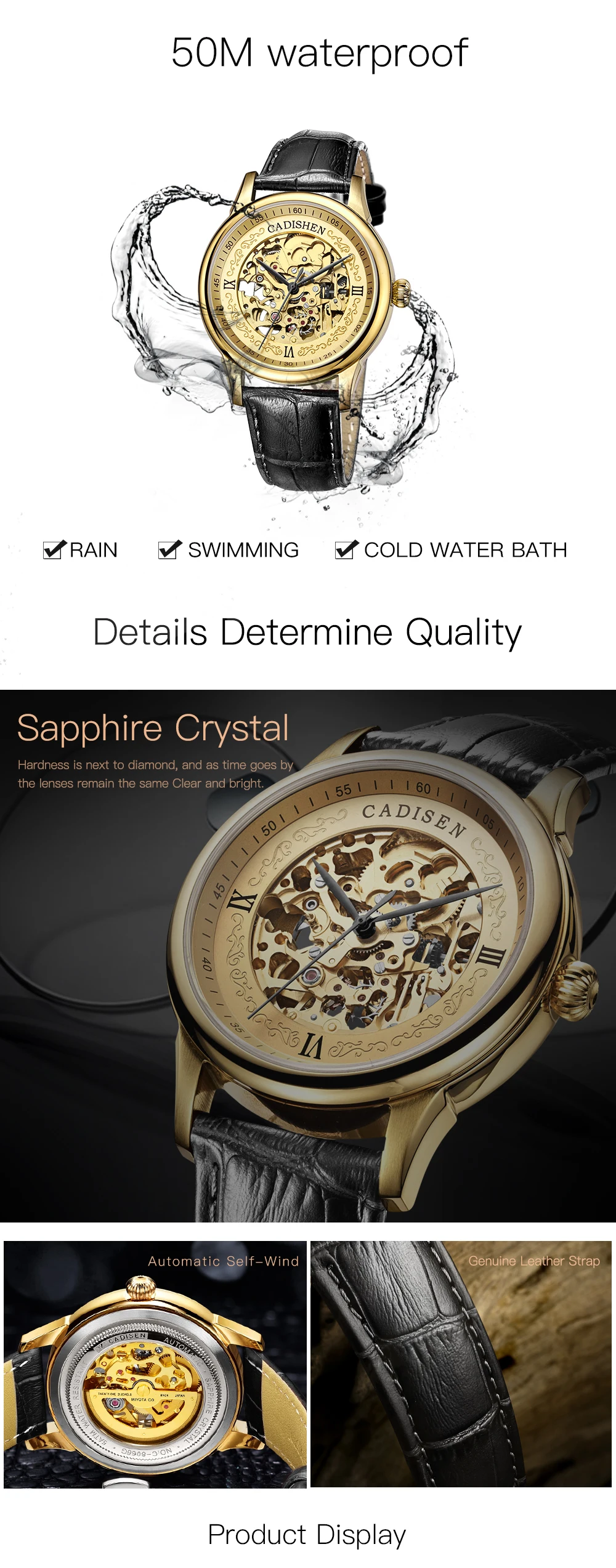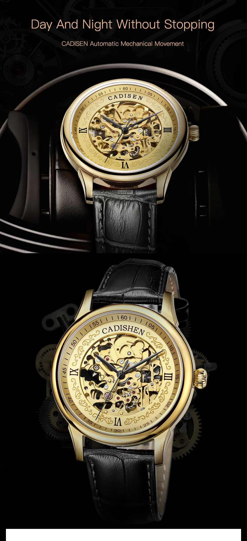 Cadisen золотые часы Мужские механические часы с скелетом из нержавеющей стали топ бренды Роскошные мужские часы Montre Homme кожаные Наручные часы