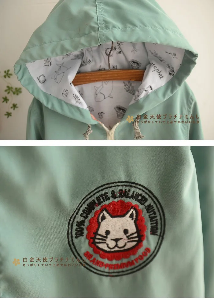 2020 Осенняя Женская куртка в японском стиле Mori Girl Cat с вышивкой, однотонная Свободная верхняя одежда с капюшоном и длинным рукавом, Женское пальто DW710
