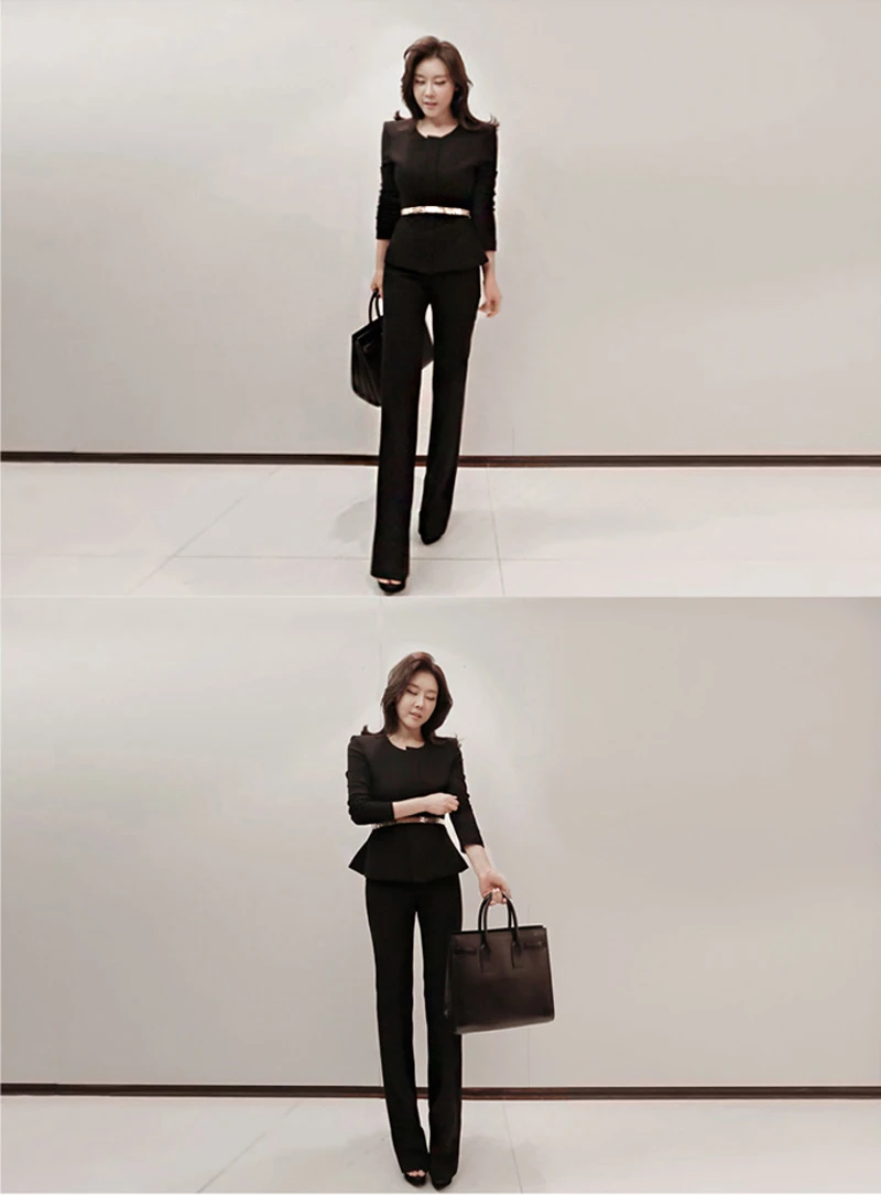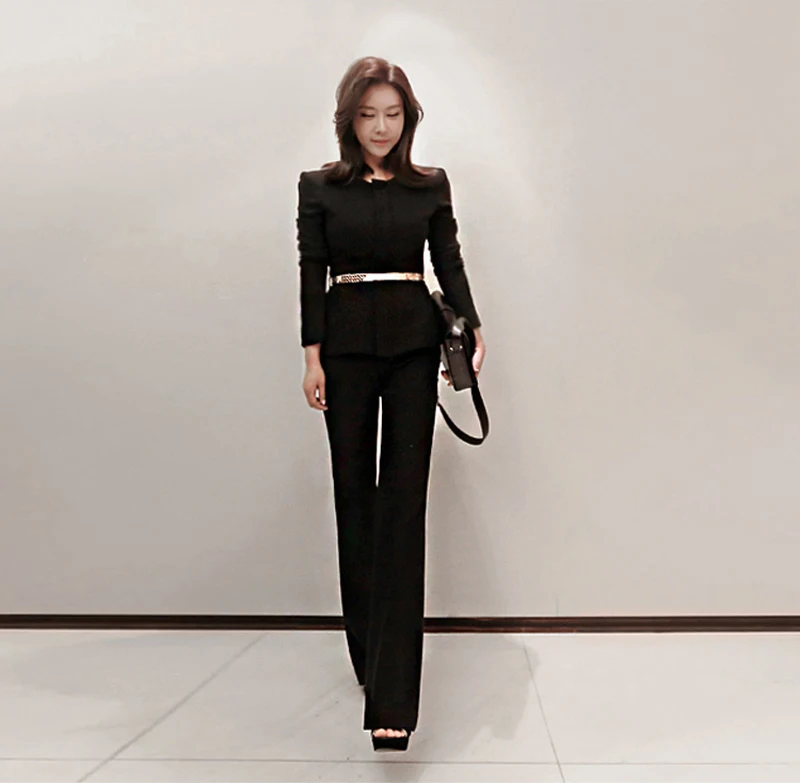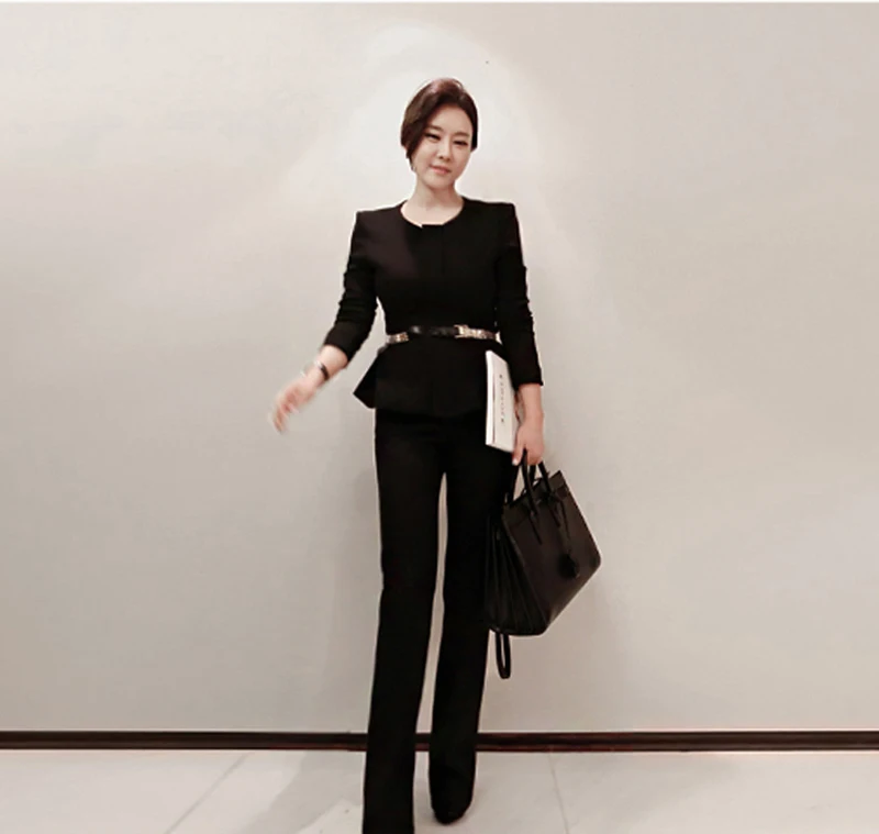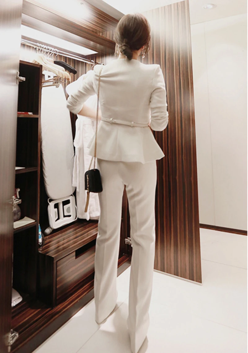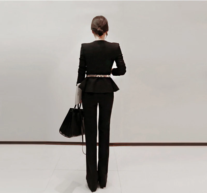 Высококачественная женская одежда 2020, Модный осенне-зимний костюм с черным поясом и оборками, блейзер + однотонные штаны, комплект из 2 предметов AQ131