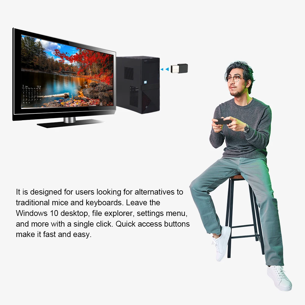 USB приемник. Его конструкция plug-and-play означает, что пульт дистанционного управления может быть легко подключен к вашему ПК с Windows 10, просто подключите его.