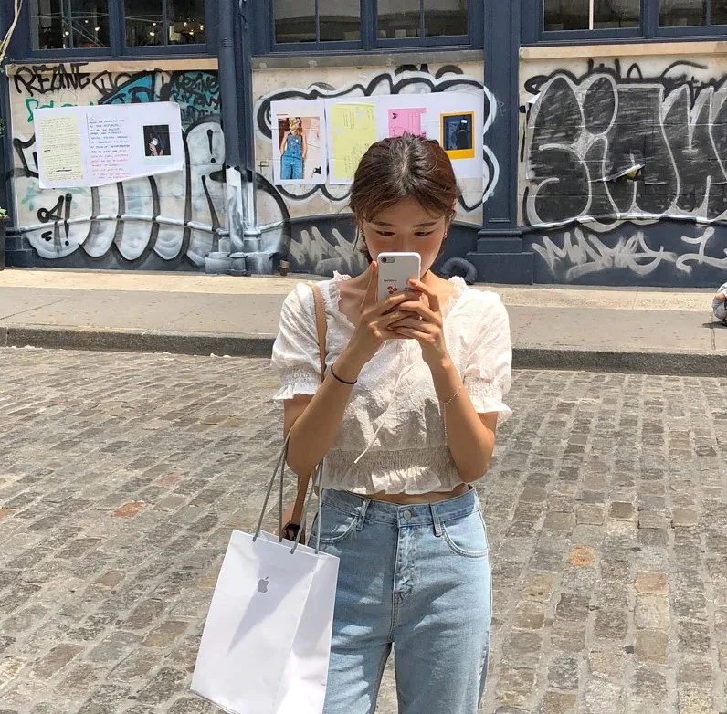 2020 Летние повседневные белые рубашки с цветочной вышивкой и бантом, со шнуровкой, свободные, простые, с коротким рукавом, подходят ко всему, AE680
