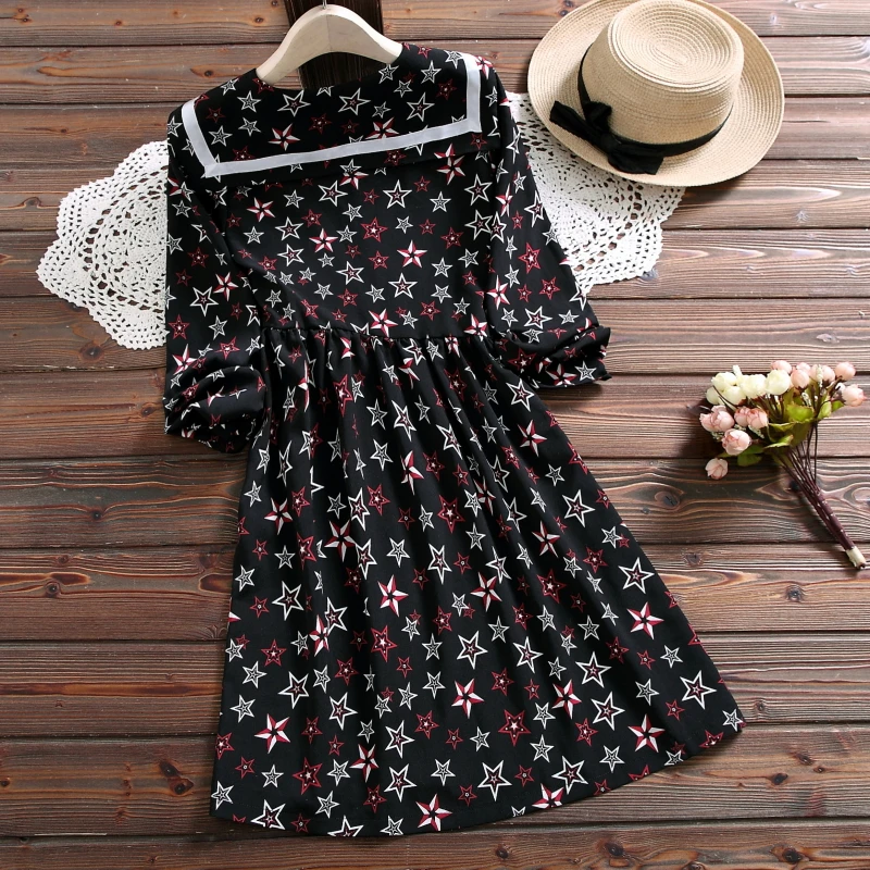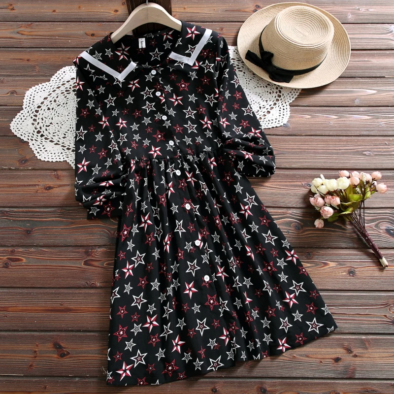Весенне-осеннее женское платье с длинным рукавом и принтом звезды, новое модное винтажное платье с воротником Питера Пэна mori girl