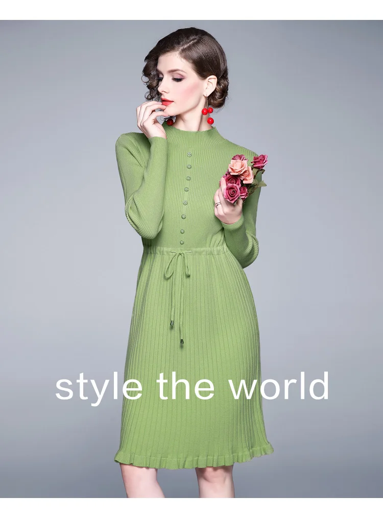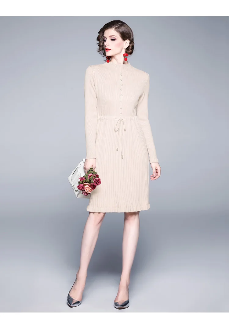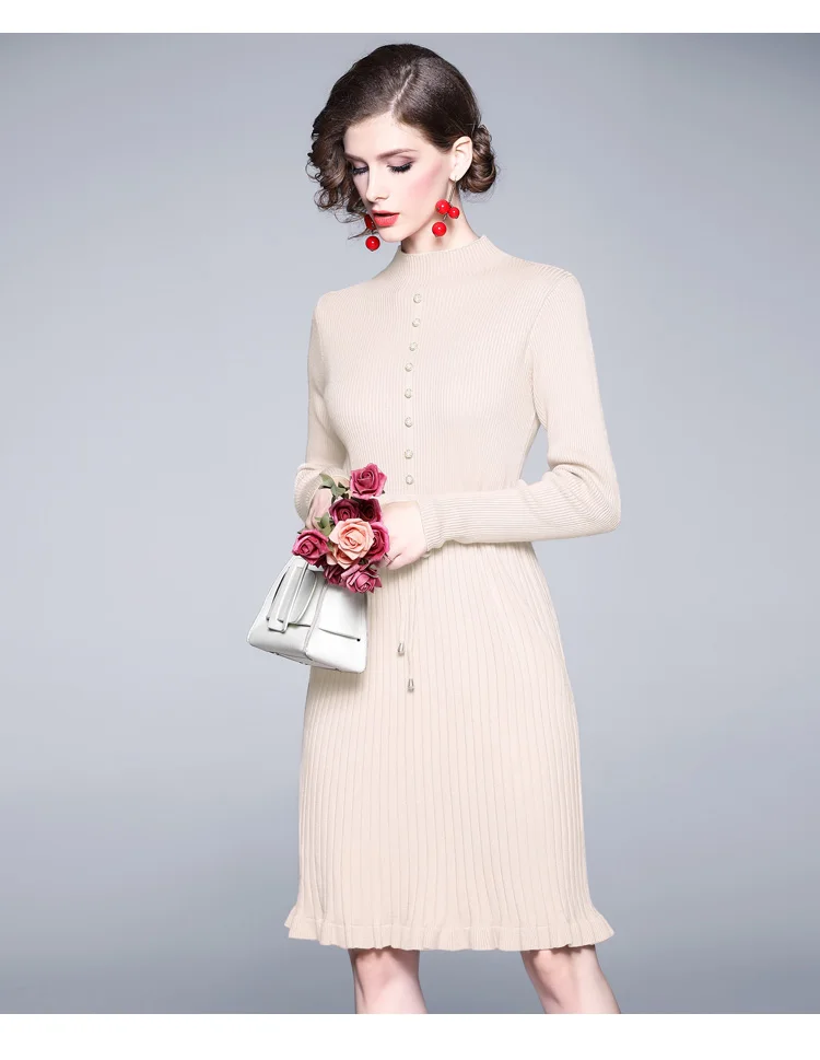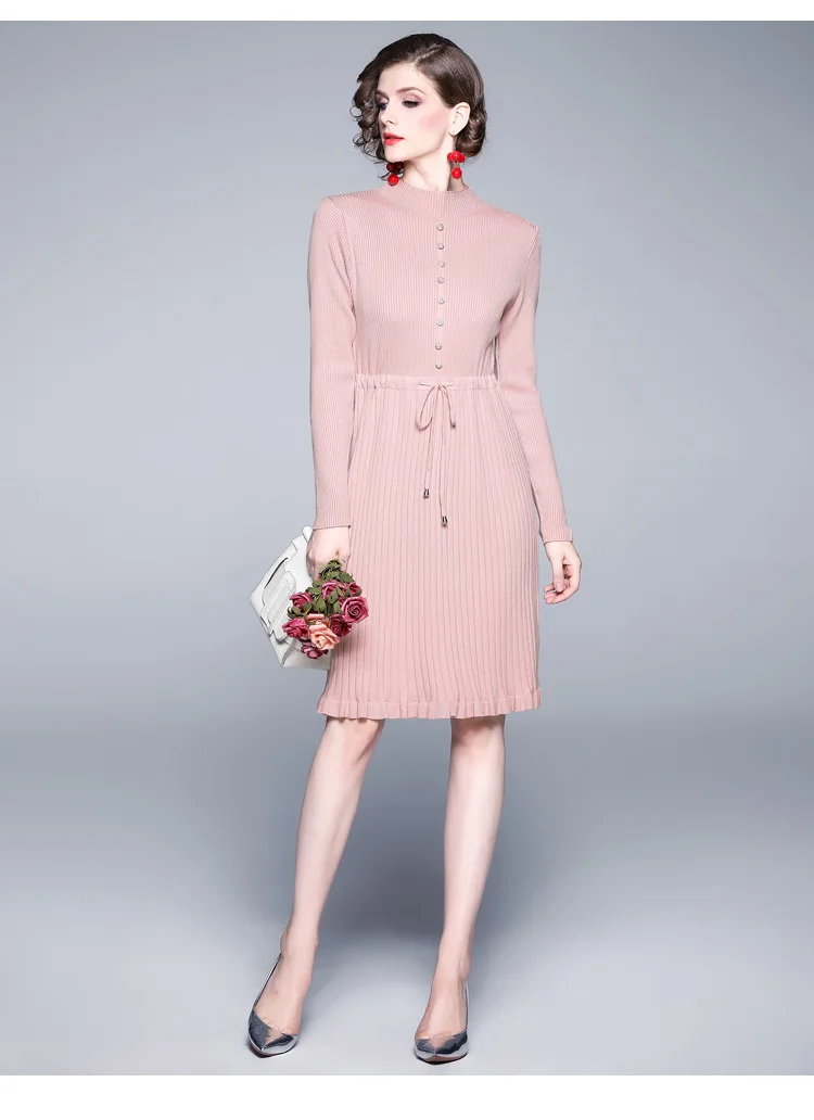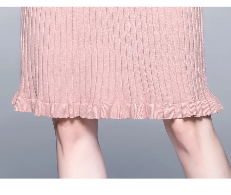 Женское трикотажное платье средней длины с высоким воротником Moda Mujer, розовые вечерние платья-свитера средней длины с длинным рукавом, модель K9022, 2019