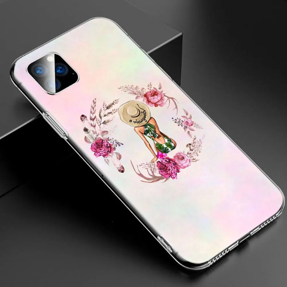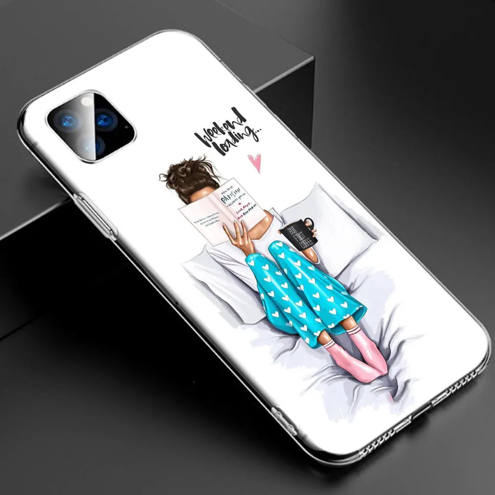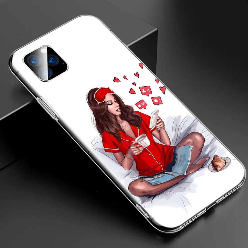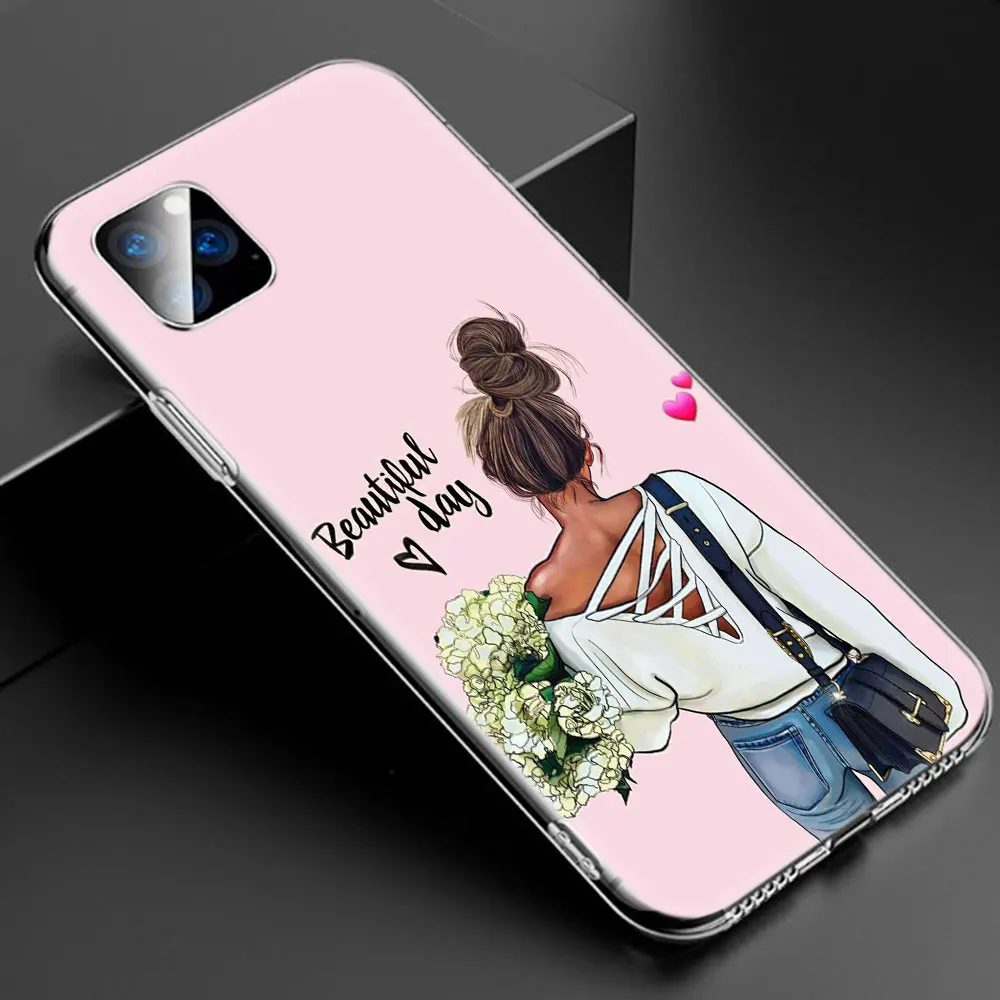 MLLSEГорячий черный коричневый волос Кофе Девушка босс Мягкий силиконовый прозрачный чехол для Apple iPhone 11 Pro XS Max X XR 6 6s 7 8 Plus 5 5s SE Модный чехол