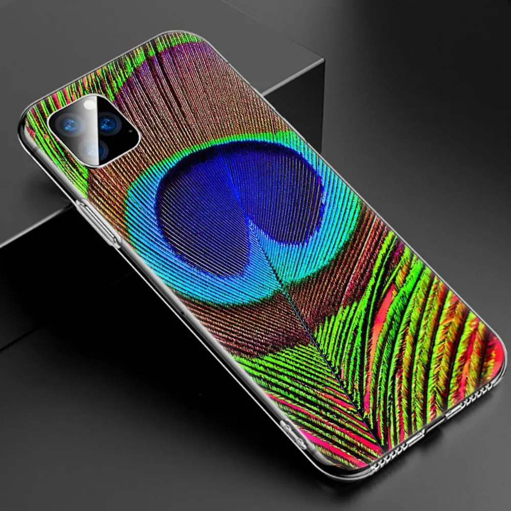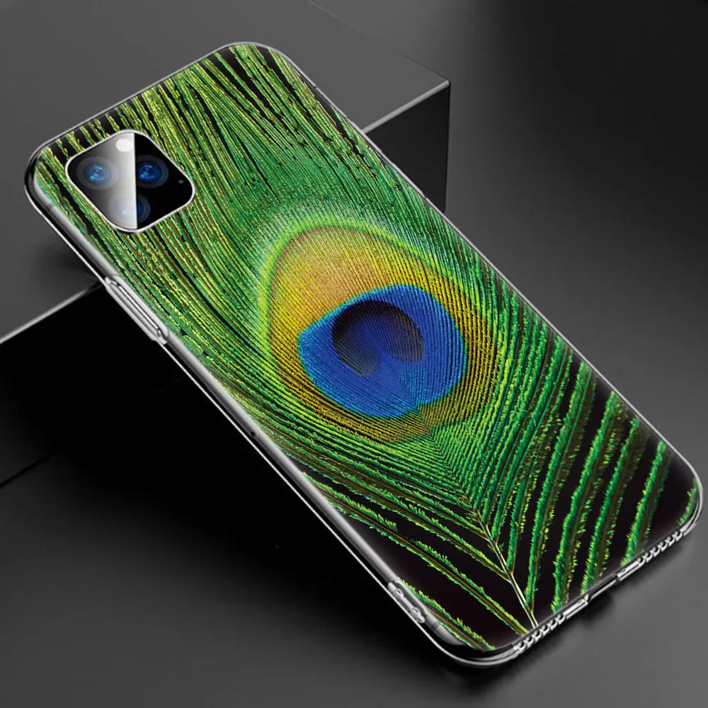 MLLSEПопулярный красивый мягкий силиконовый прозрачный чехол с перьями павлина для Apple iPhone 11 Pro XS Max X XR 6 6s 7 8 Plus 5 5S SE Модный чехол