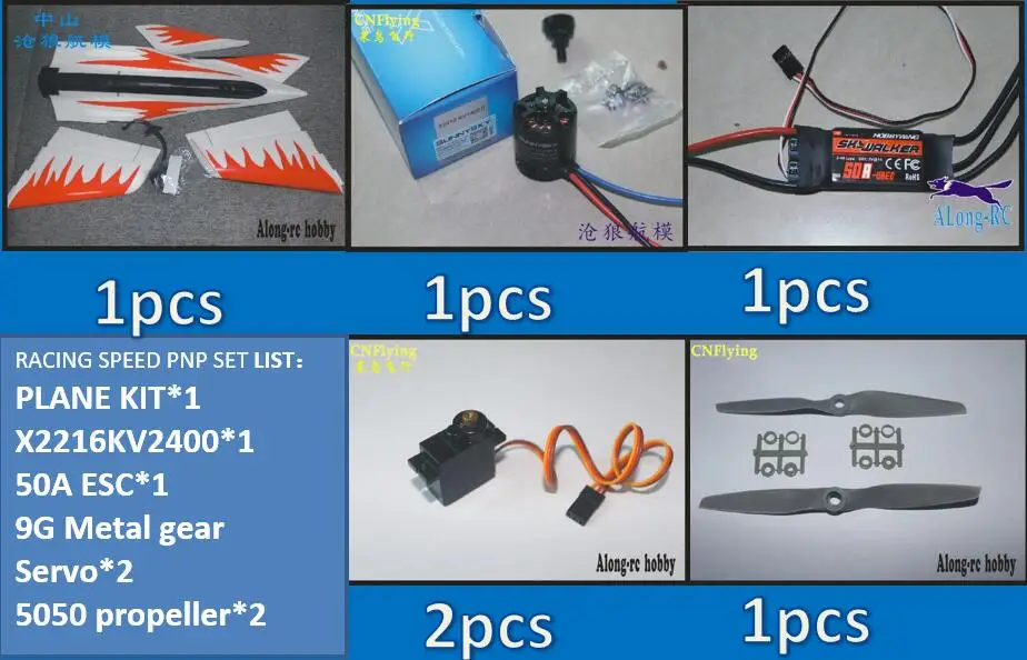 2. Летающий PNP Набор (разобранный комплект): Это комплект + двигатель XXD2212 KV2200 + 30A ESC + 9g SERVO 2шт + 6040 пропеллер, нужен другой радио, аккумулятор. Зарядное устройство может летать!