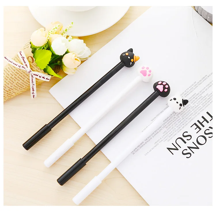 12 шт./компл. корейский Кот каваии, гелевые ручки милые лапы Цвет: белый, черный, голубой ручка канцелярский Карандаш Чехол сумка Забавный Новинка Прохладный Материал вещь