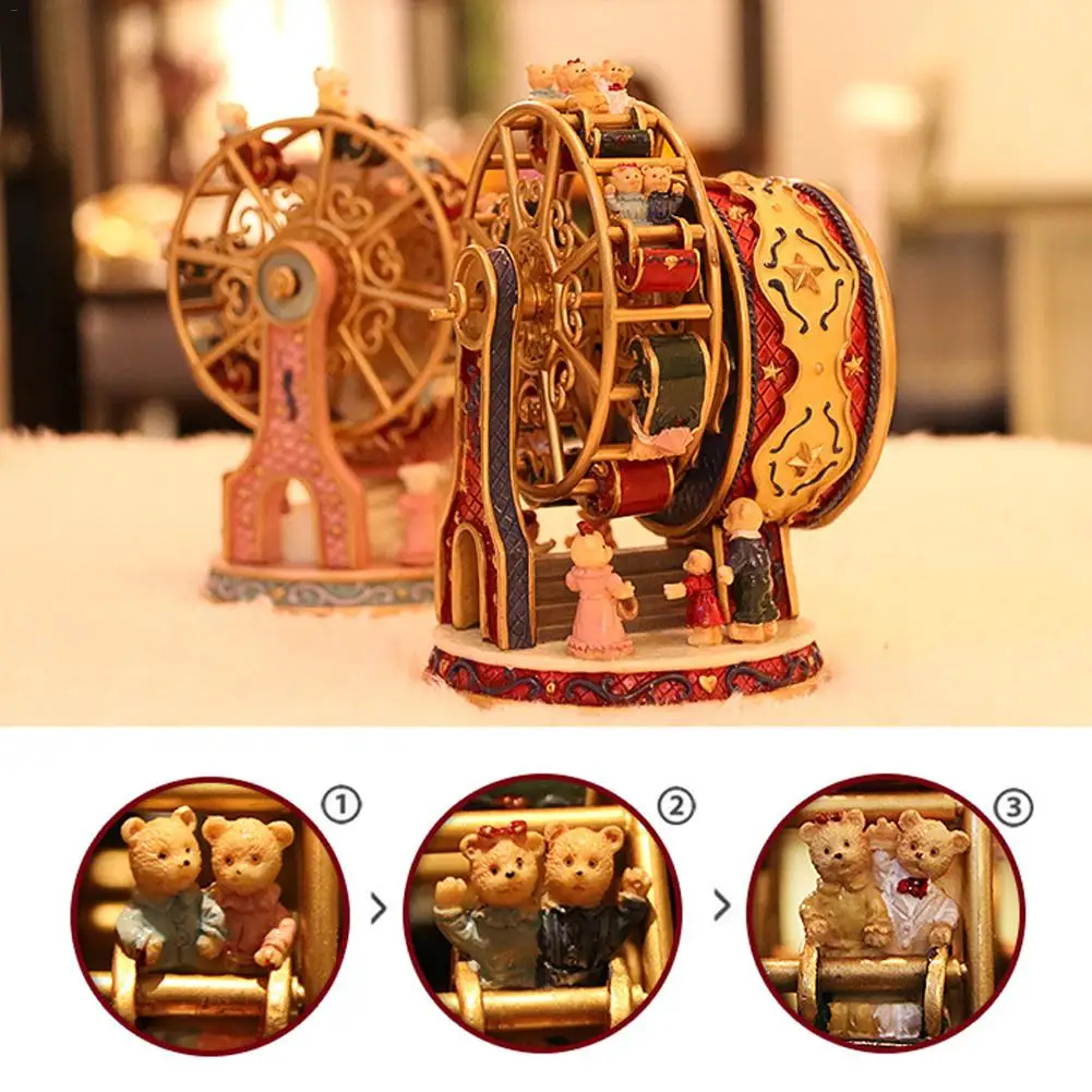 Вращающееся колесо обозрения вращающаяся музыкальная шкатулка из смолы медведь музыкальная шкатулка Рождественский подарок украшение