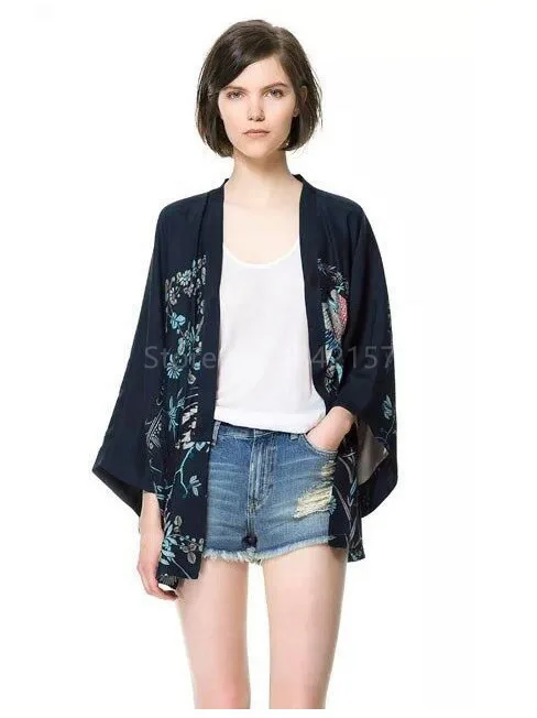 Женский кардиган в японском стиле Haori, шифоновое кимоно с принтом, верхняя одежда, пляжная одежда, весна 2019