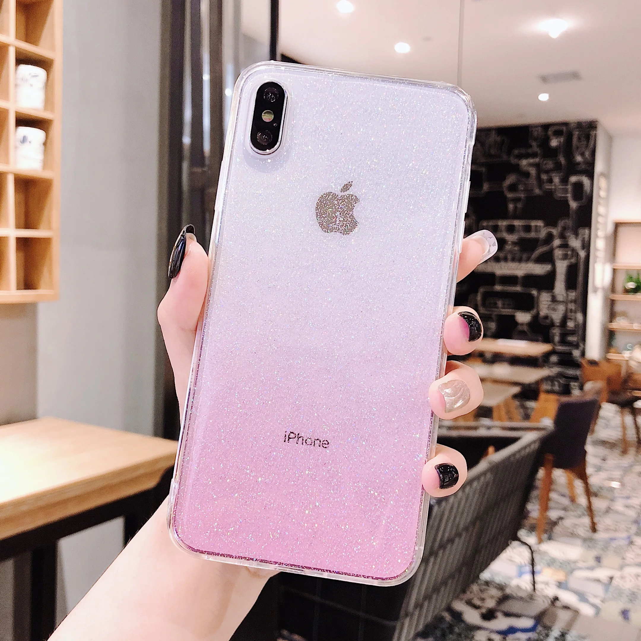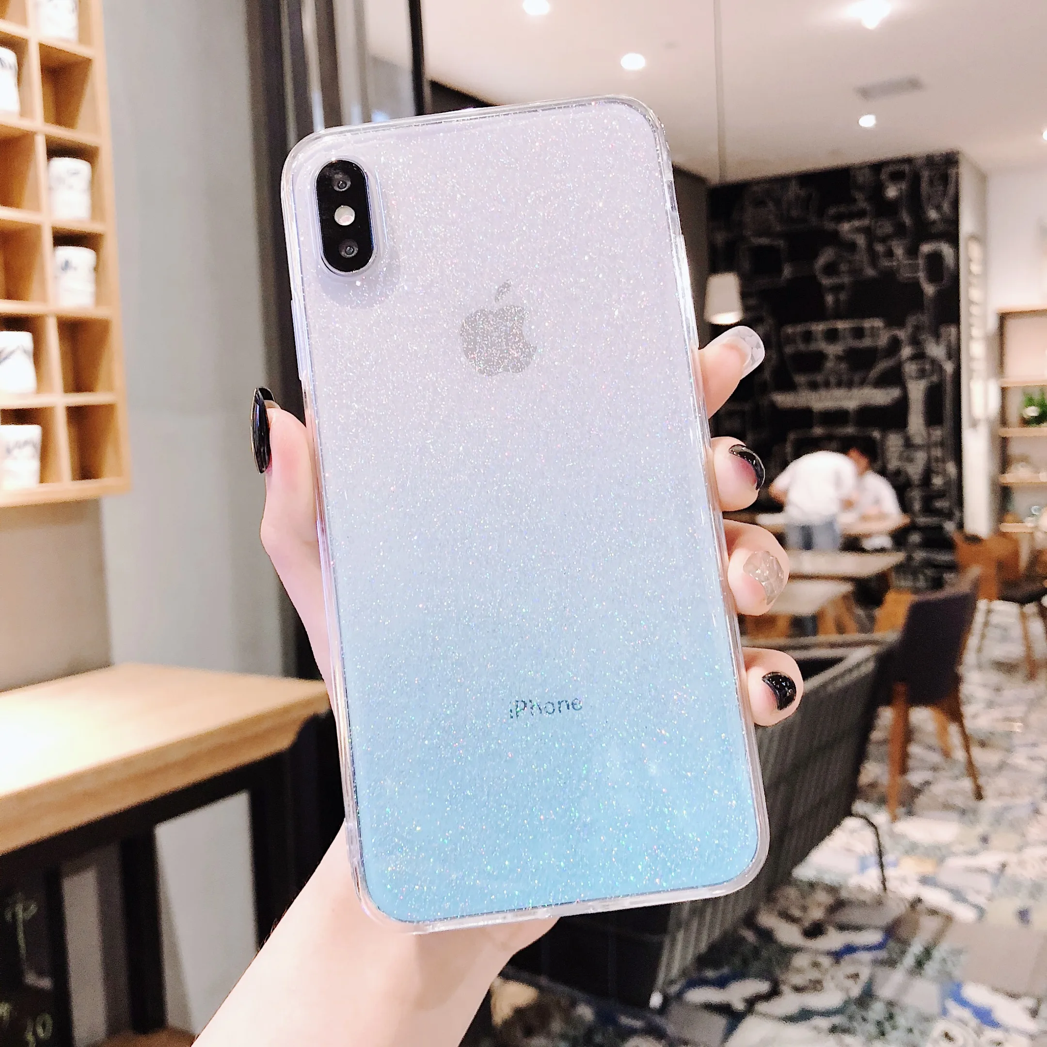 Блестящий Прозрачный чехол для телефона iPhone X XR 11 Pro XS Max 8 7 6S 6 Plus, чехол, Блестящий Мягкий ТПУ, милые прозрачные чехлы для девочек