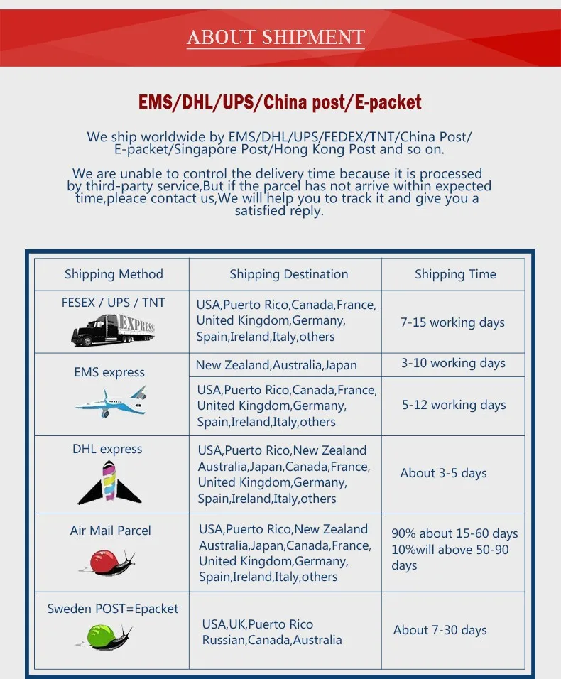 1. Русские друзья, пожалуйста, оставьте свое полное имя, чтобы получить посылку 2. После 60 дней (Бразилия 80 дней), если вы все еще не можете получить товар, пожалуйста, свяжитесь с нами своевременно, и мы будем рады помочь вам решить. 3. Пожалуйста, свяжитесь с нами, прежде чем открыть спор, мы можем решить вашу проблему.