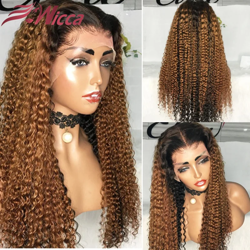 Wicca 360 кружевной фронтальный человеческий бесклеевой парик Омбре блонд изюминка кудрявые 180 плотность предварительно сорванные Remy бразильские волосы для женщин