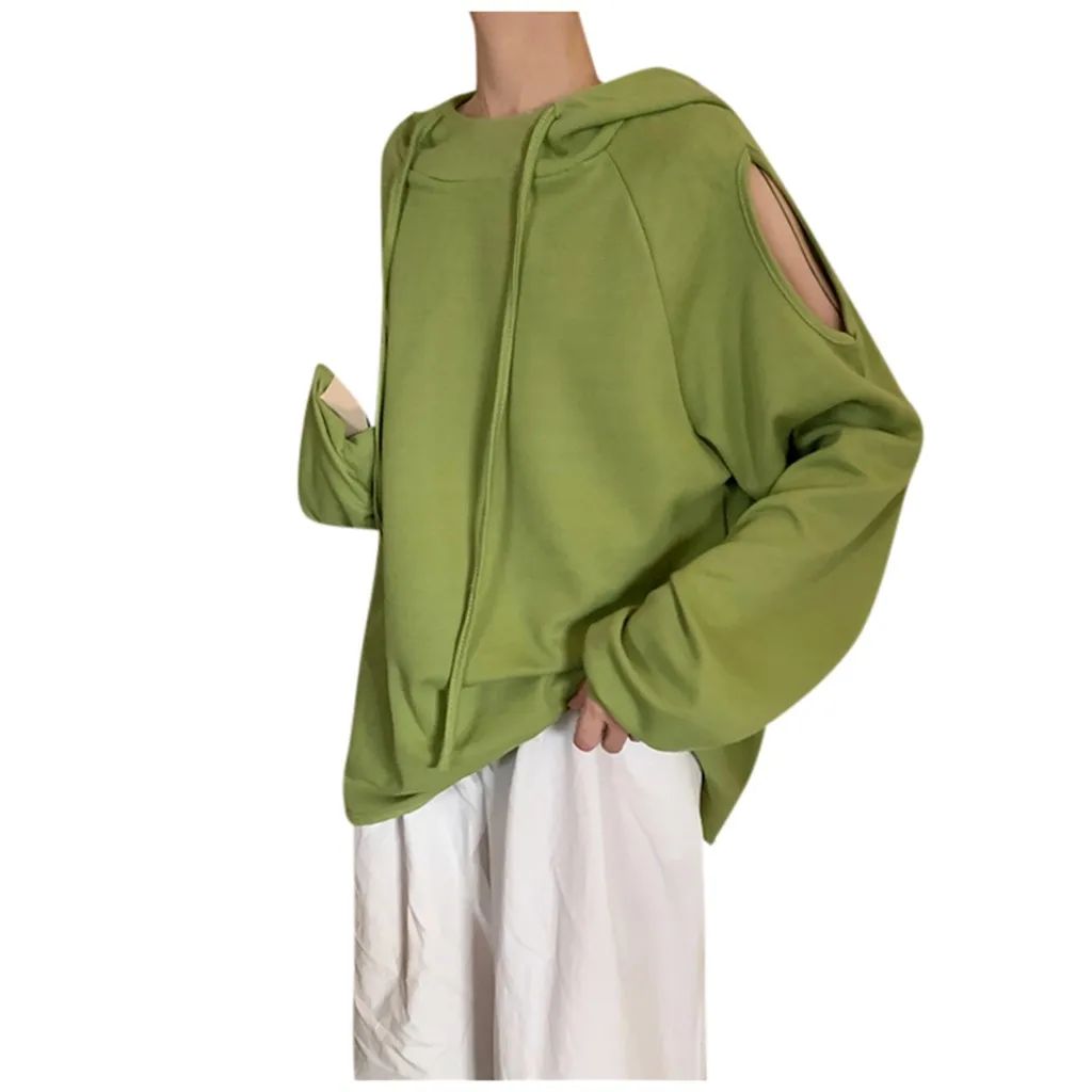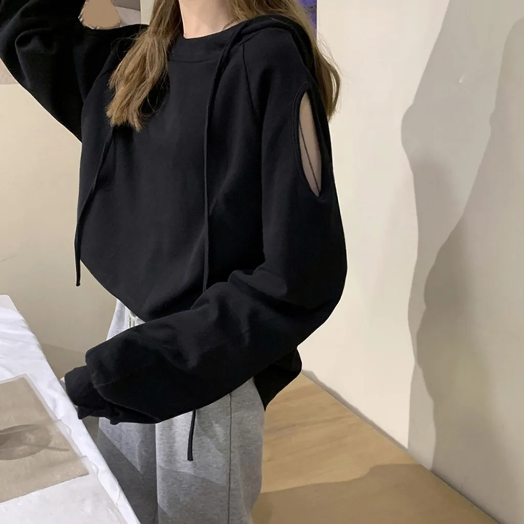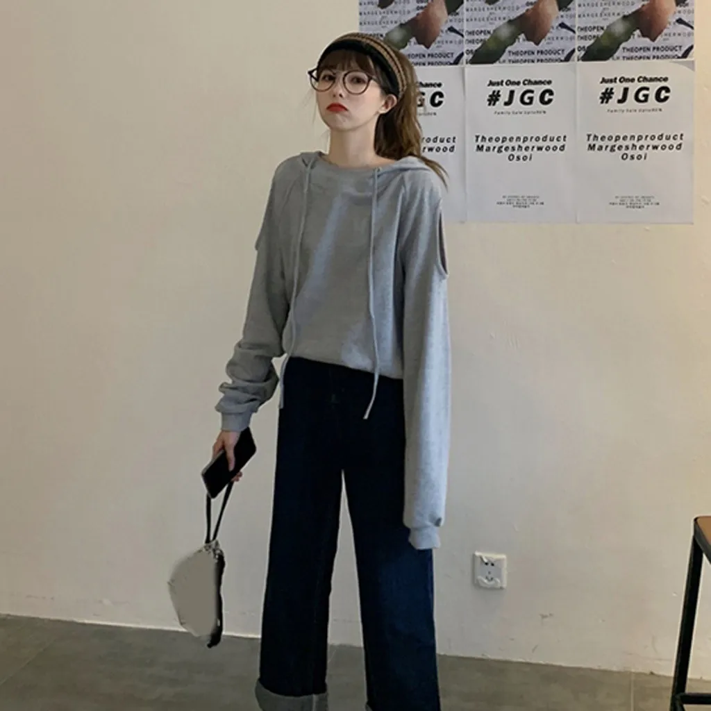Women Casual Long Sleeve Off Shoulder Hooded Sweatshirt Pullover Blouse
