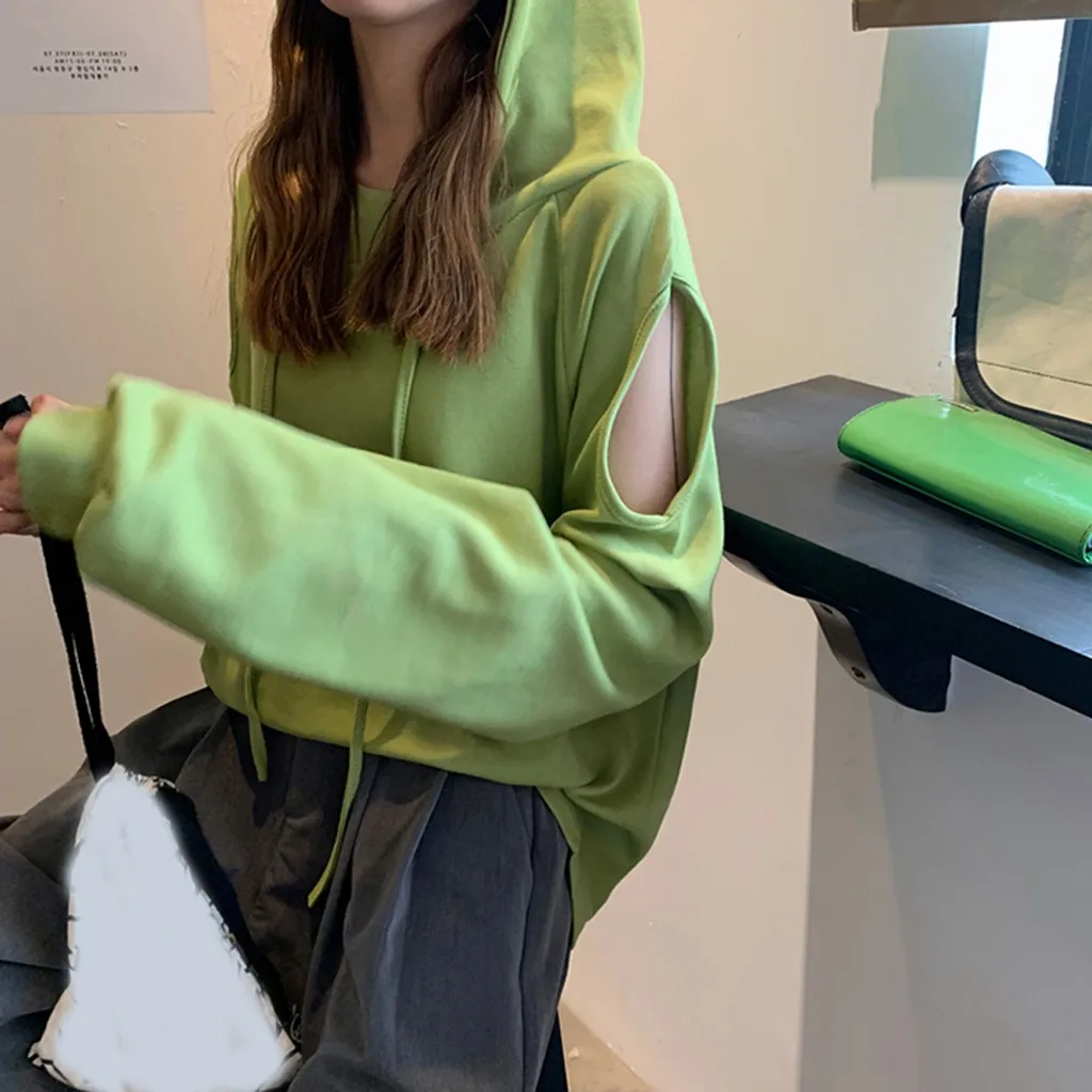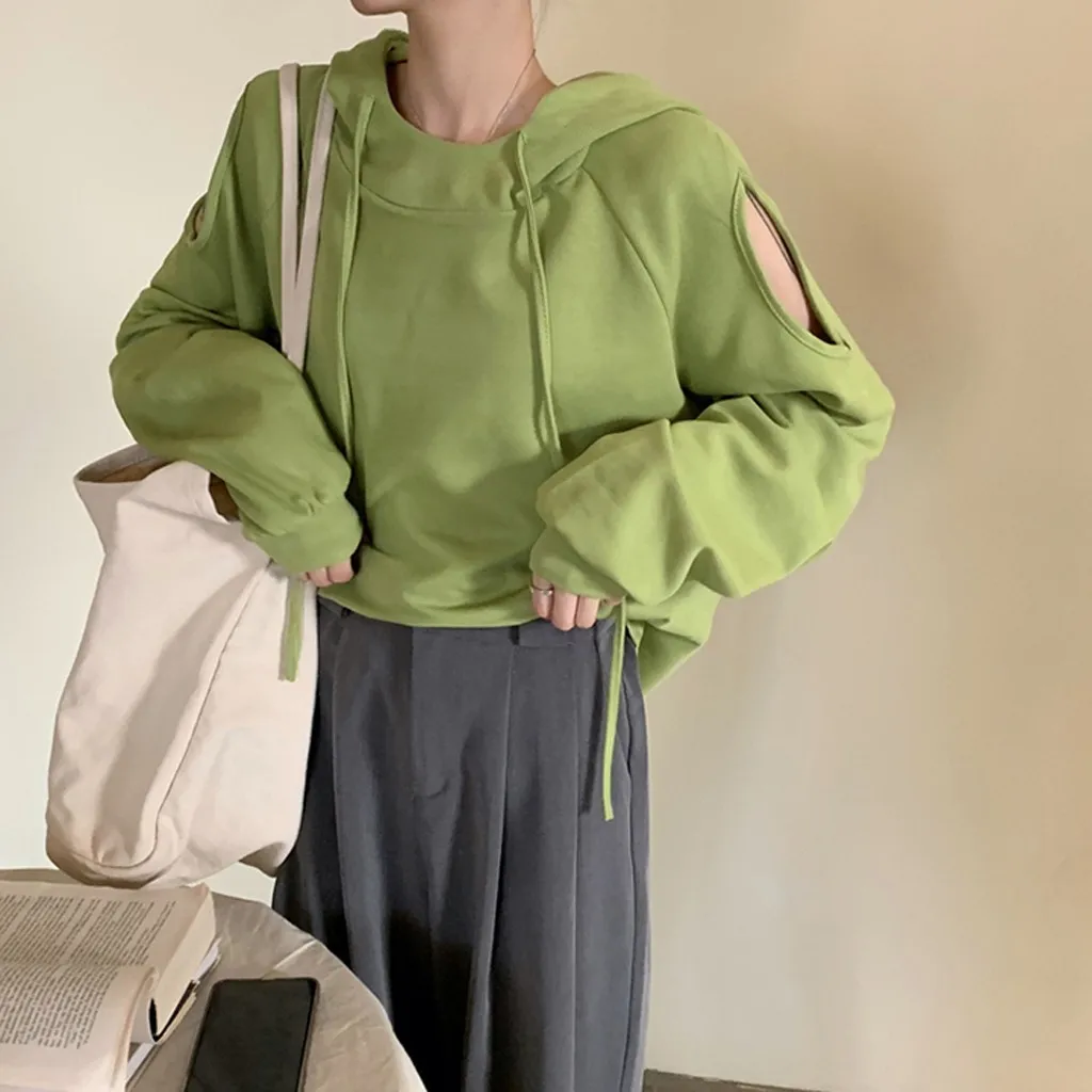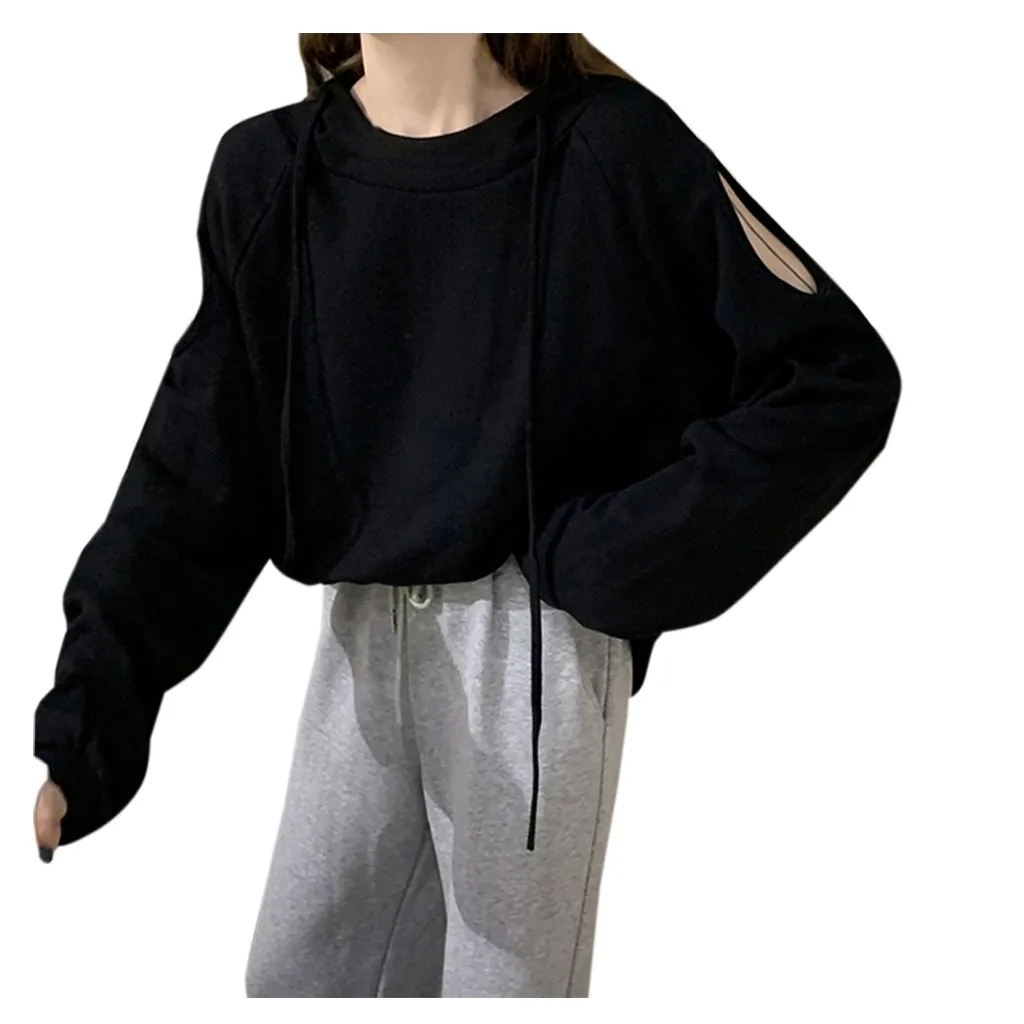 Women Casual Long Sleeve Off Shoulder Hooded Sweatshirt Pullover Blouse