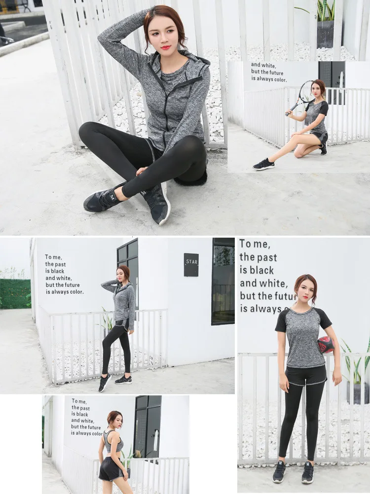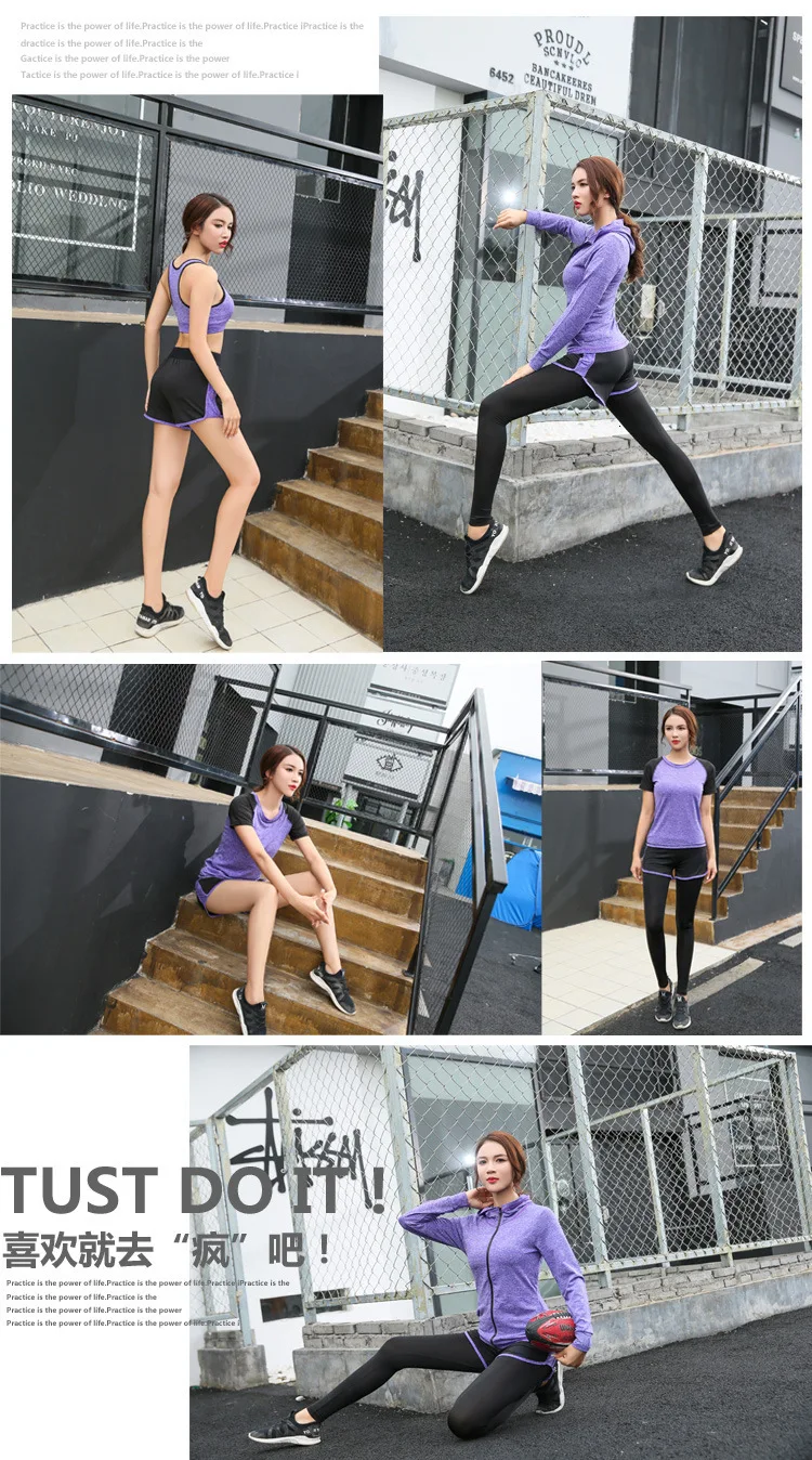 Комплект для йоги, спортивная куртка + колготки + шорты + рубашка для йоги + спортивные бюстгальтеры, 5 шт., спортивный костюм для бега, спортивная одежда для фитнеса, 2019