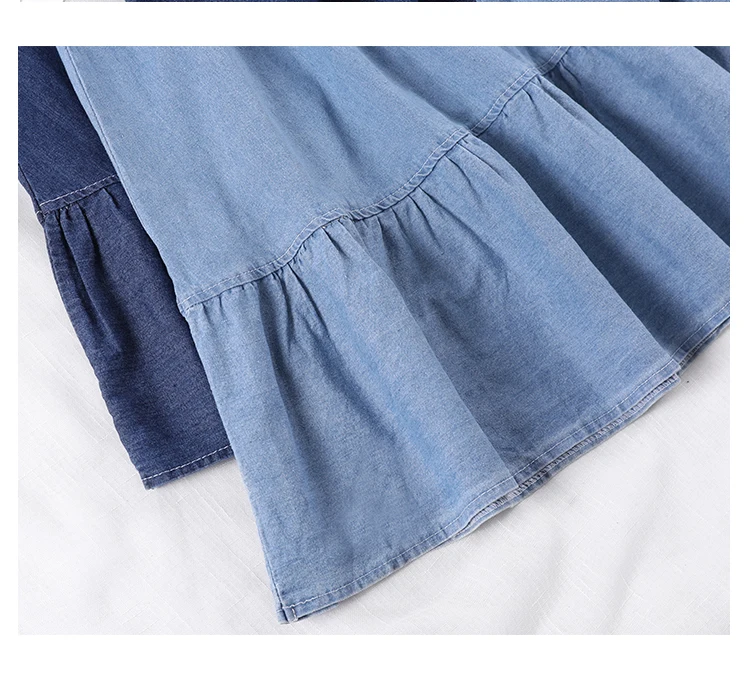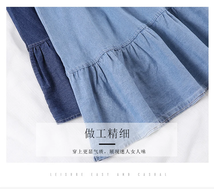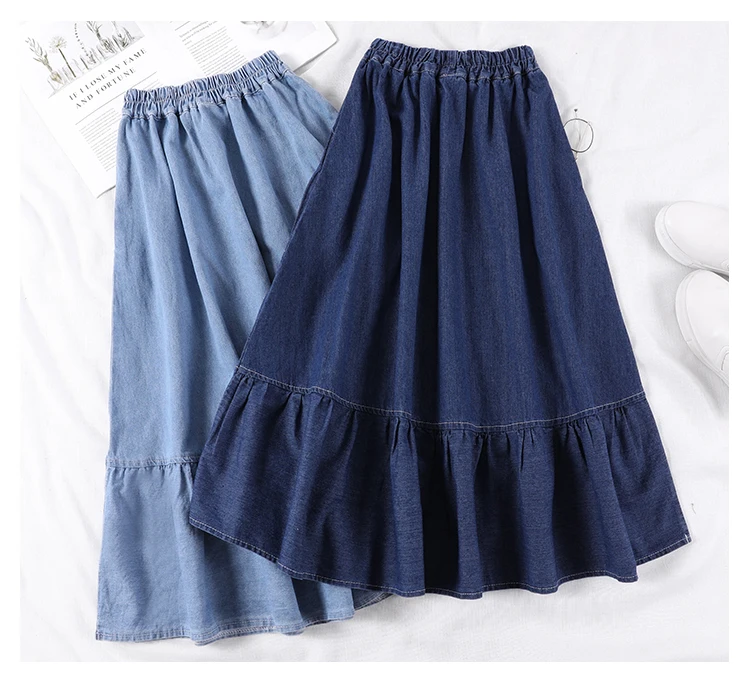Летняя женская длинная джинсовая юбка-трапеция с карманами, женские джинсы Midi с высокой талией, юбки темно-синего цвета, светильник синего цвета размера плюс, юбки AE591