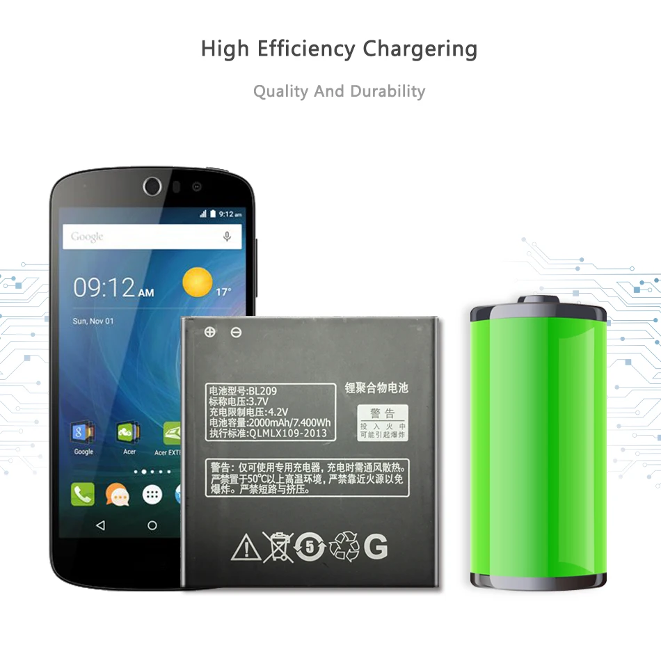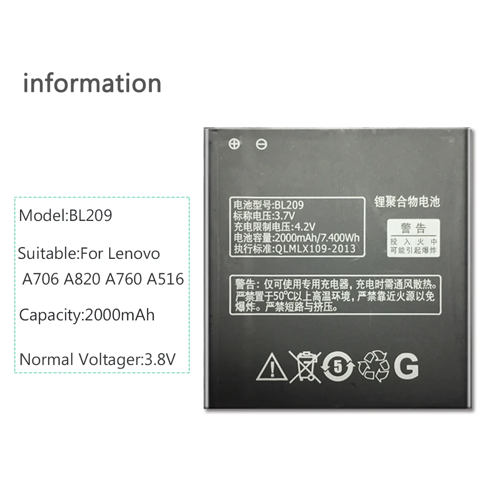 Замена батареи сотового телефона 2000mAh BL209 для lenovo A706 A788T A820E A760 A516 A378T A398T полимерный литий-ионный аккумулятор