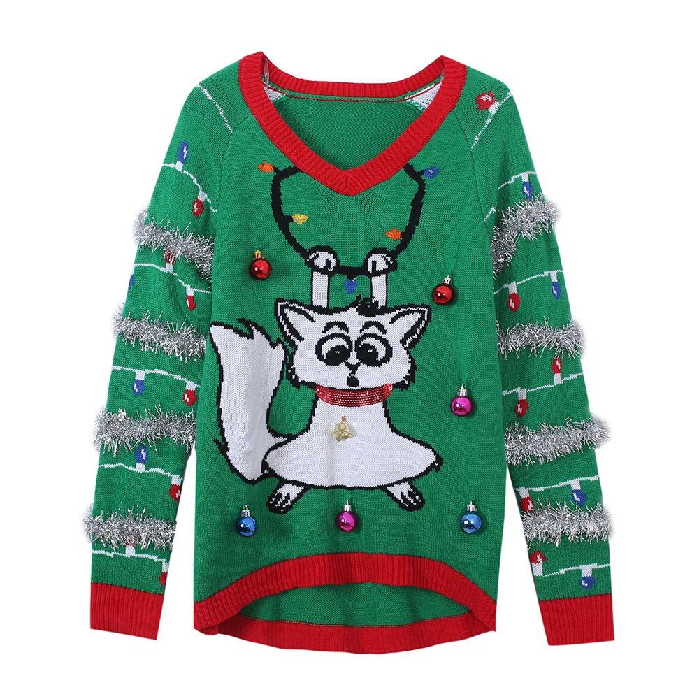 Светодиодный светильник вязаный уродливый джемпер Мультяшные кошачьи свитера рождественские свитера с рисунком Санта Клауса топы для мужчин и женщин пуловеры