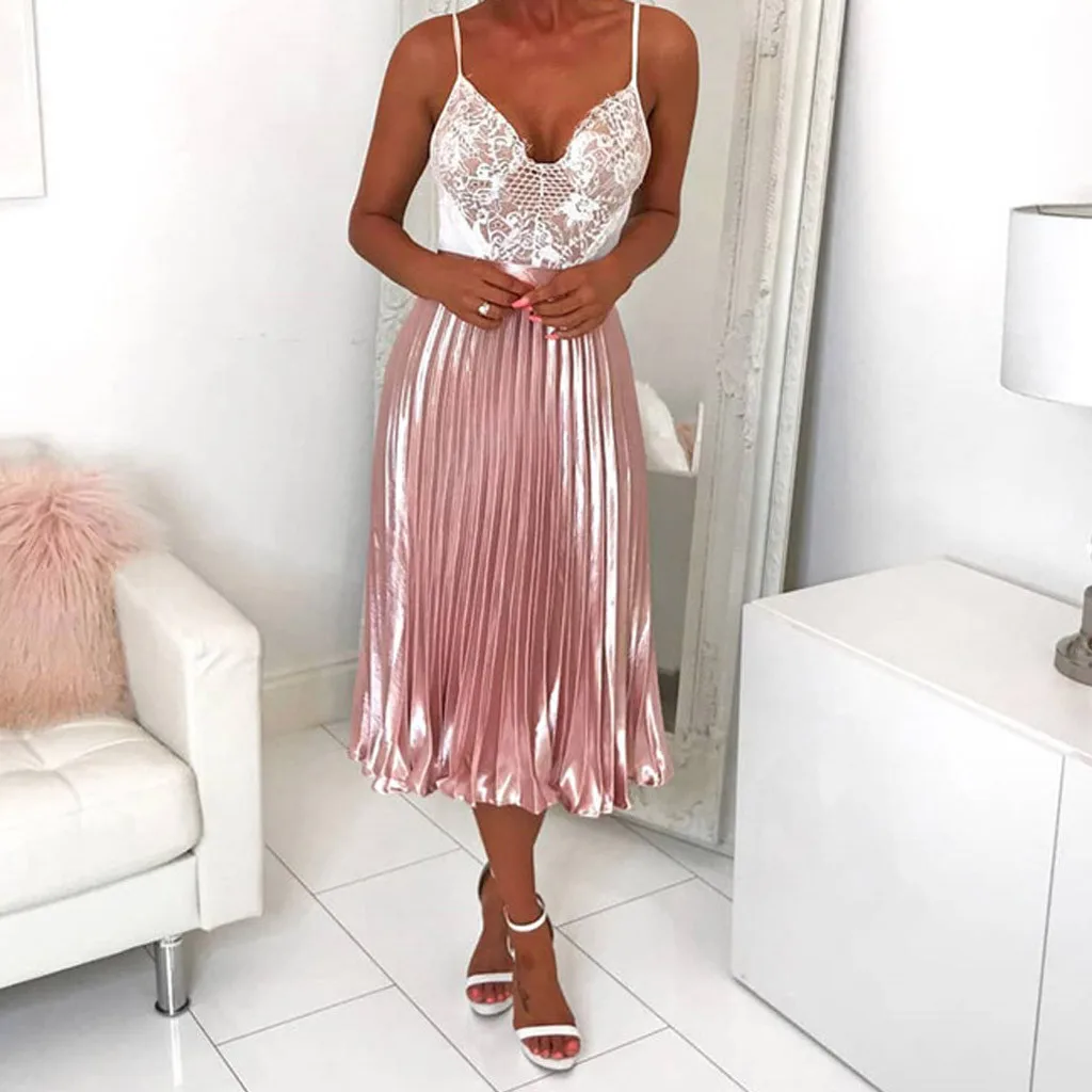 Женская плиссированная элегантная шифоновая юбка миди с эластичной талией, Женская длинная юбка-свинг