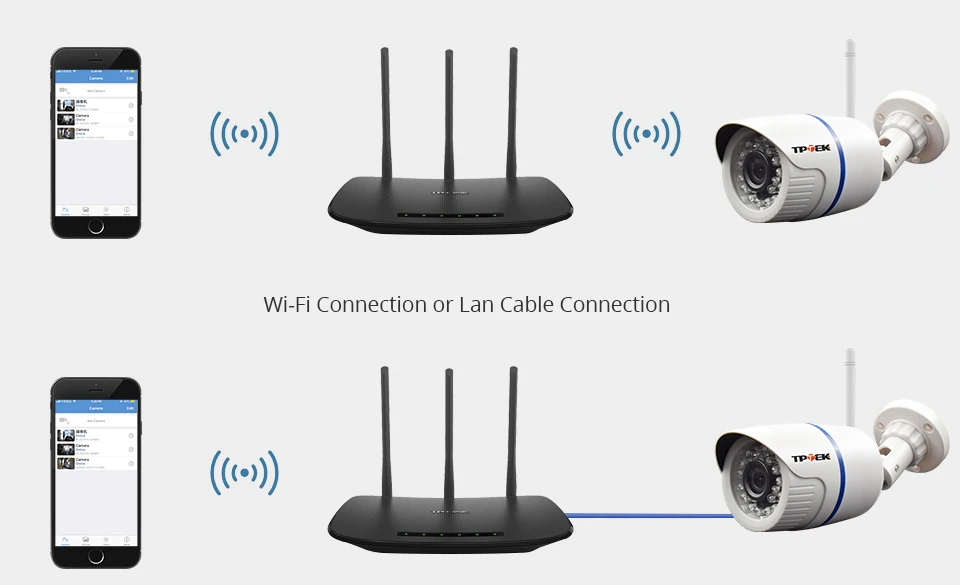 Поддерживает 2,4 ГГц Wi-Fi и подключения к локальной сети, независимо от того, где вы находитесь, вы можете удаленно получить доступ к камере, чтобы увидеть прямые трансляции и оставайтесь на связи. Удаленно просматривайте камеру с помощью приложения на мобильных устройствах IOS и Android.