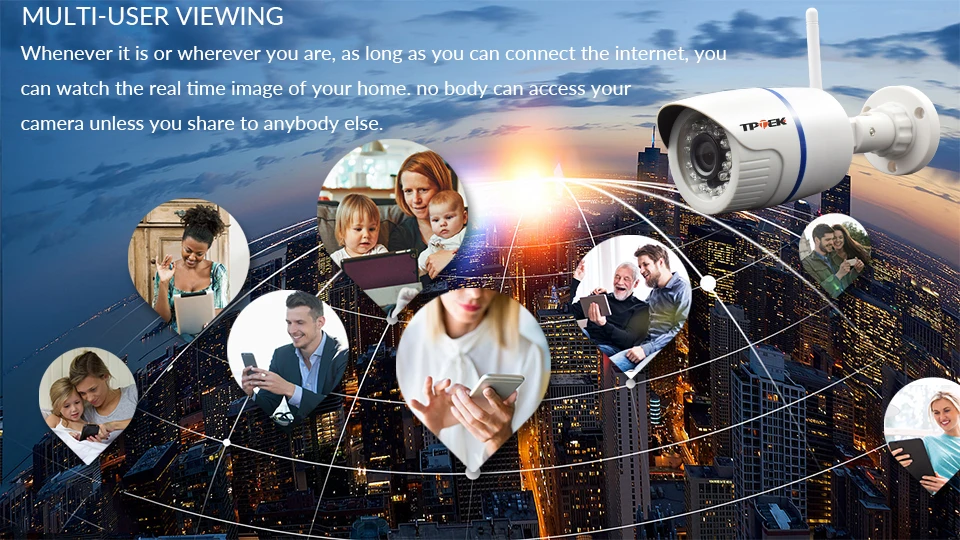Просмотр нескольких пользователей Всякий раз, когда вы находитесь или где бы вы ни находились, если вы можете подключиться к интернету, вы можете смотреть изображение вашего дома в реальном времени, ни один корпус не может получить доступ к камере, если вы не поделитесь с кем-либо другим.