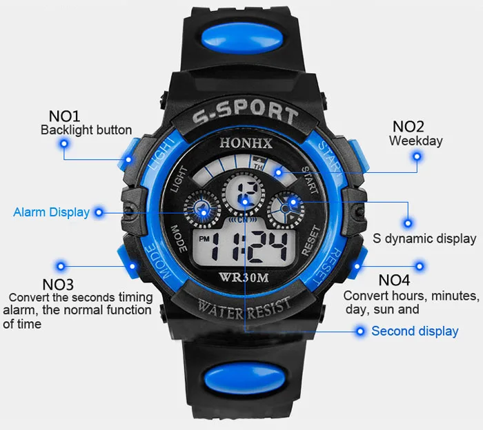 Детские спортивные часы с тремя глазами для мальчиков, цифровые светодиодные кварцевые часы с будильником, водонепроницаемые спортивные часы, часы для детей 50 *