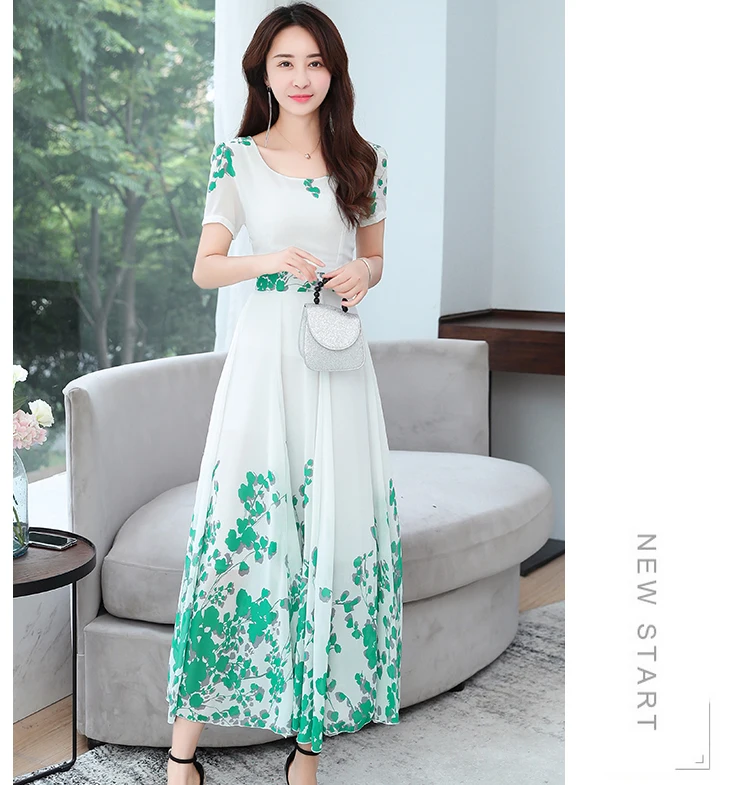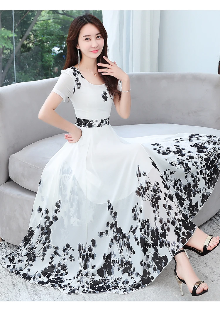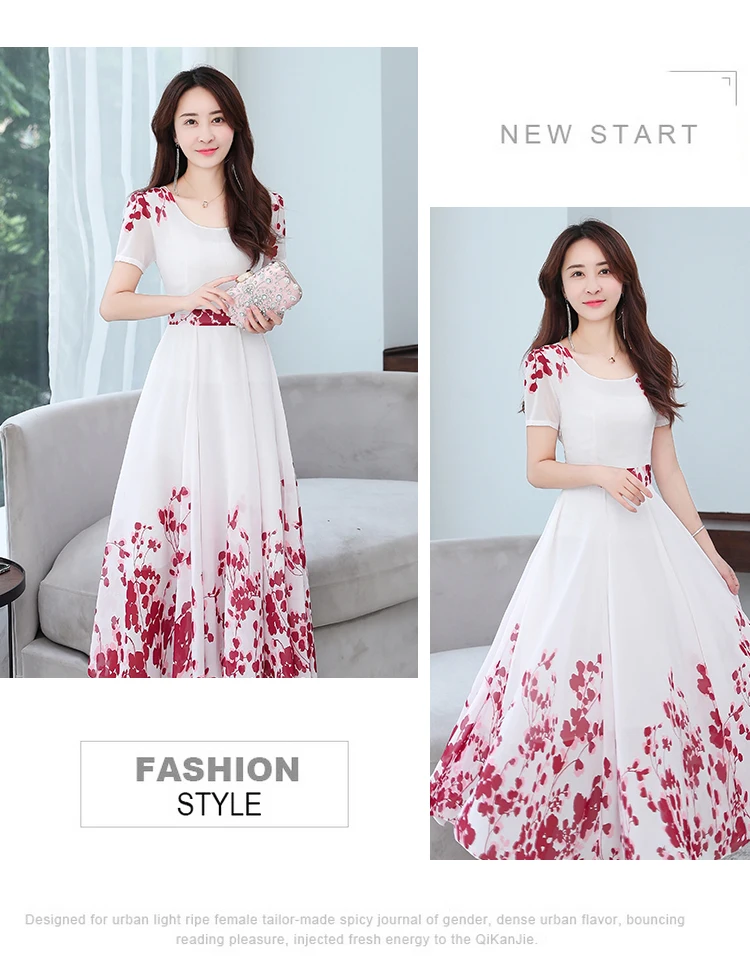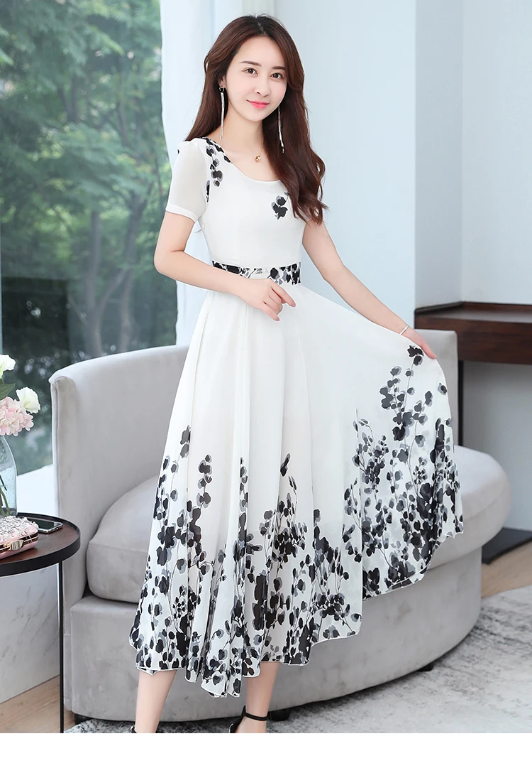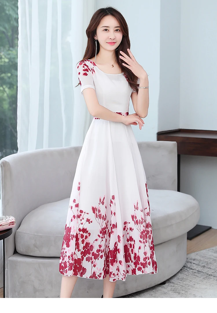 Офисное женское летнее платье, новинка 2020, корейские женские длинные шифоновые платья с коротким рукавом и цветочным принтом, большие качели, Vestidos M-XXXL, AE523