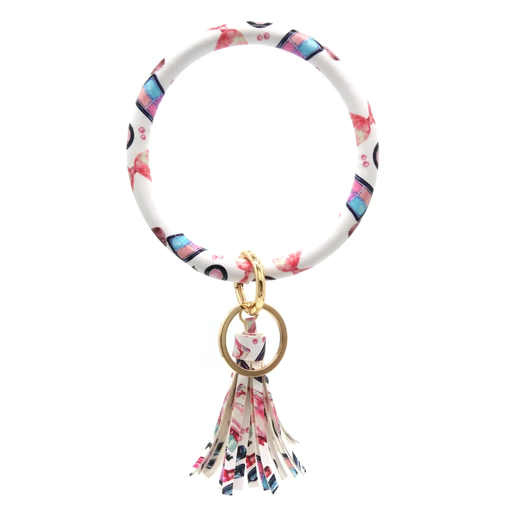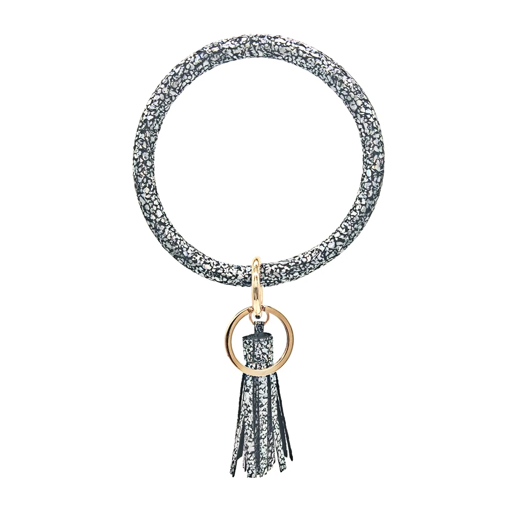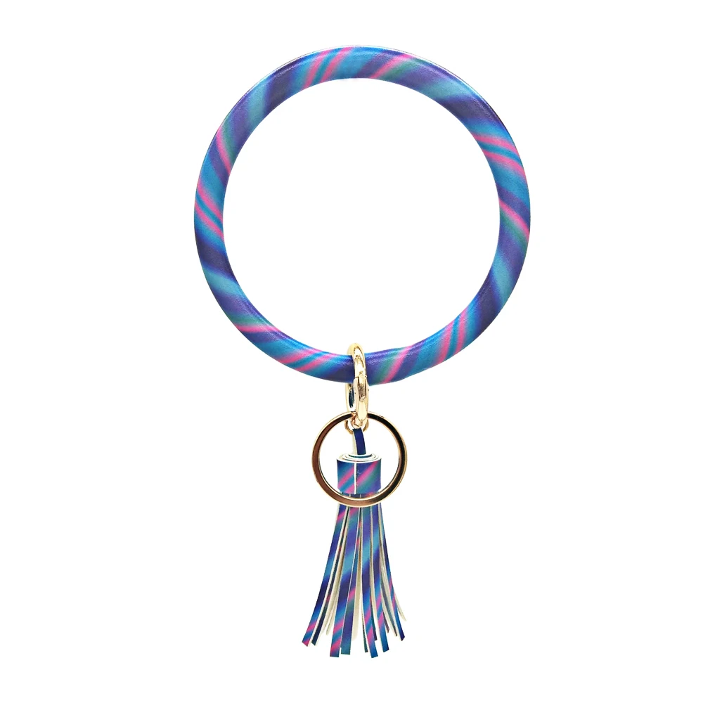 Type: Bracelet Keychain Material: alloy,PU leather,tassel Color: as picture shows Item quantity: 1pcs Item size: Outer Size: 10.5cm/4.13inch Inner Size: 8.5cm/3.35inch Package Included: 1*Bracelet Keychain