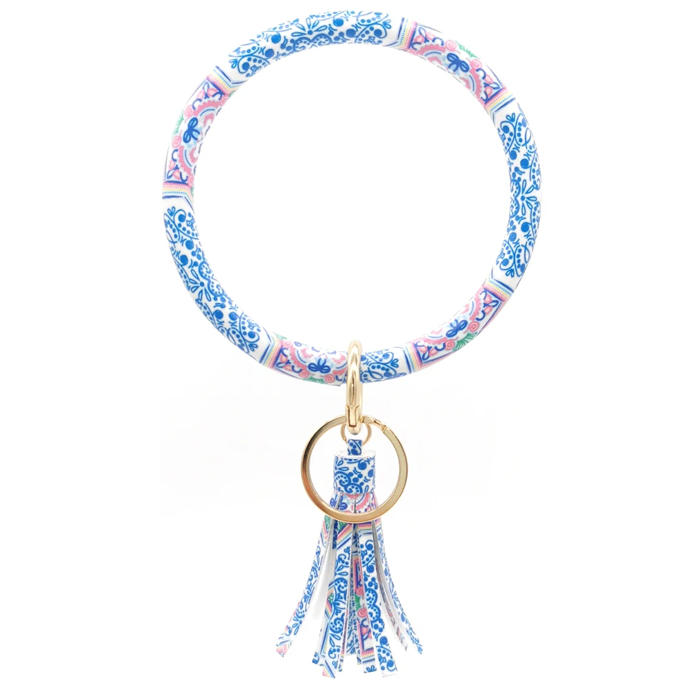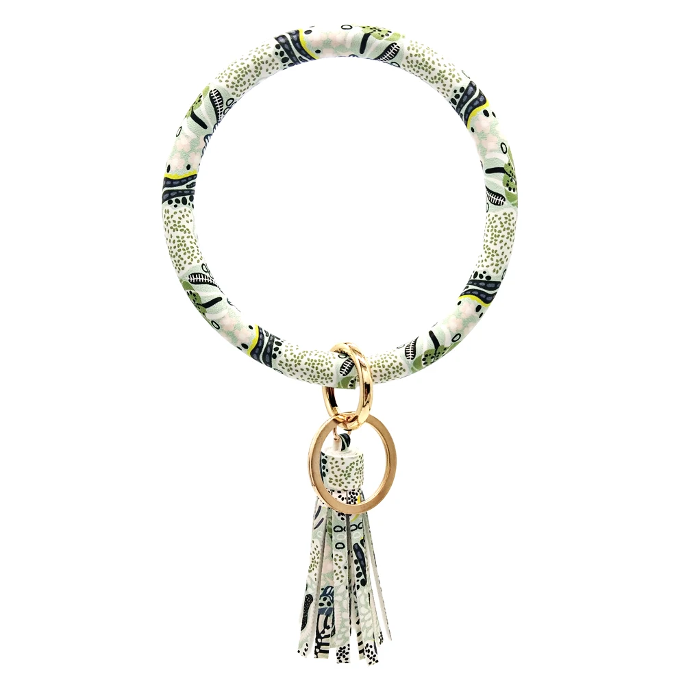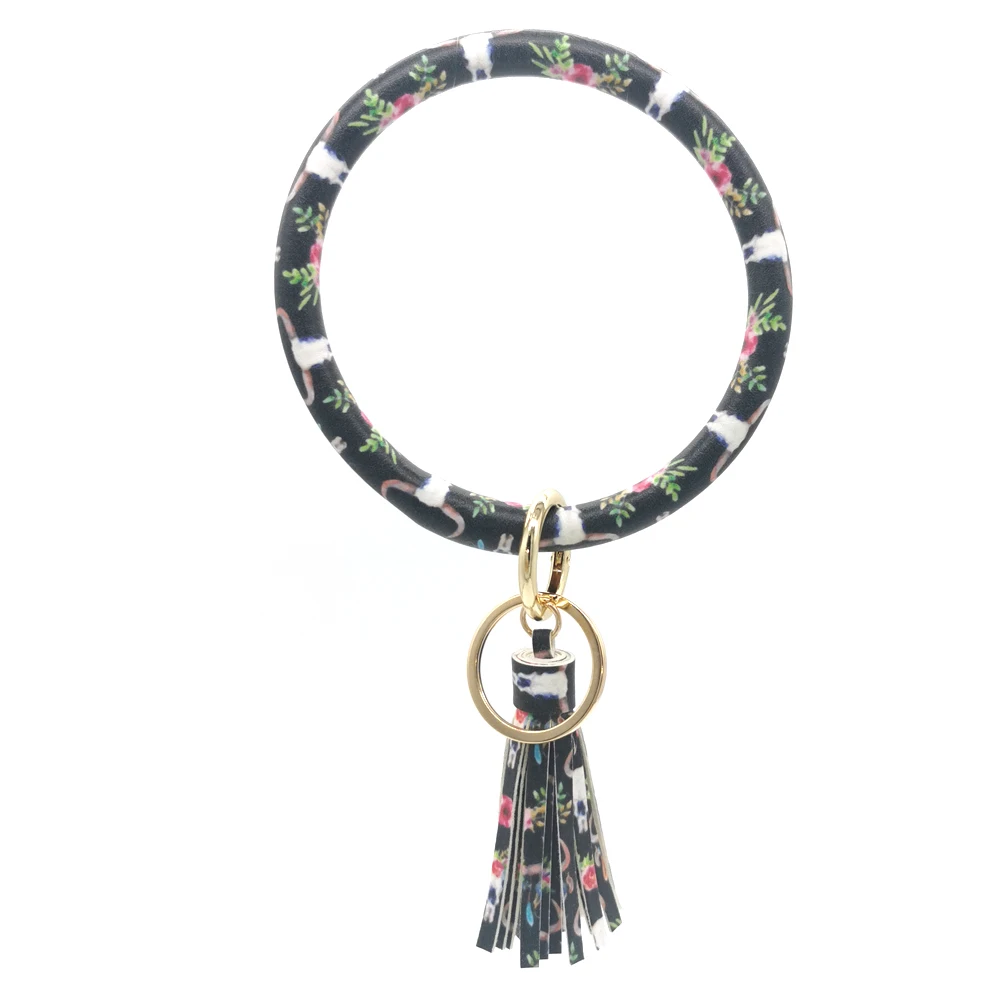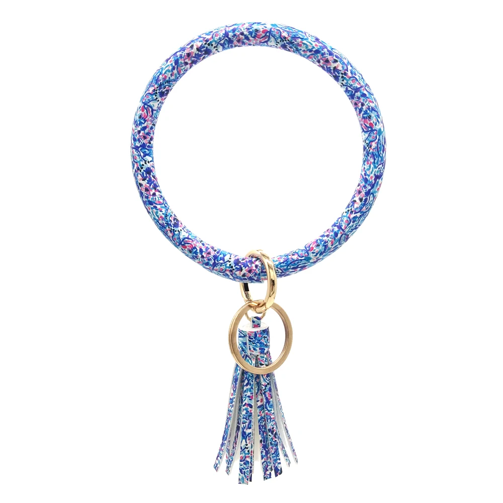 Type: Bracelet Keychain Material: alloy,PU leather,tassel Color: as picture shows Item quantity: 1pcs Item size: Outer Size: 10.5cm/4.13inch Inner Size: 8.5cm/3.35inch Package Included: 1*Bracelet Keychain