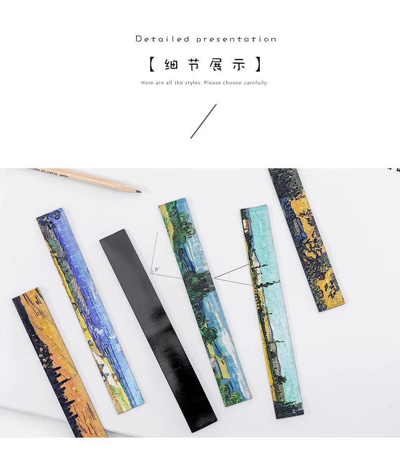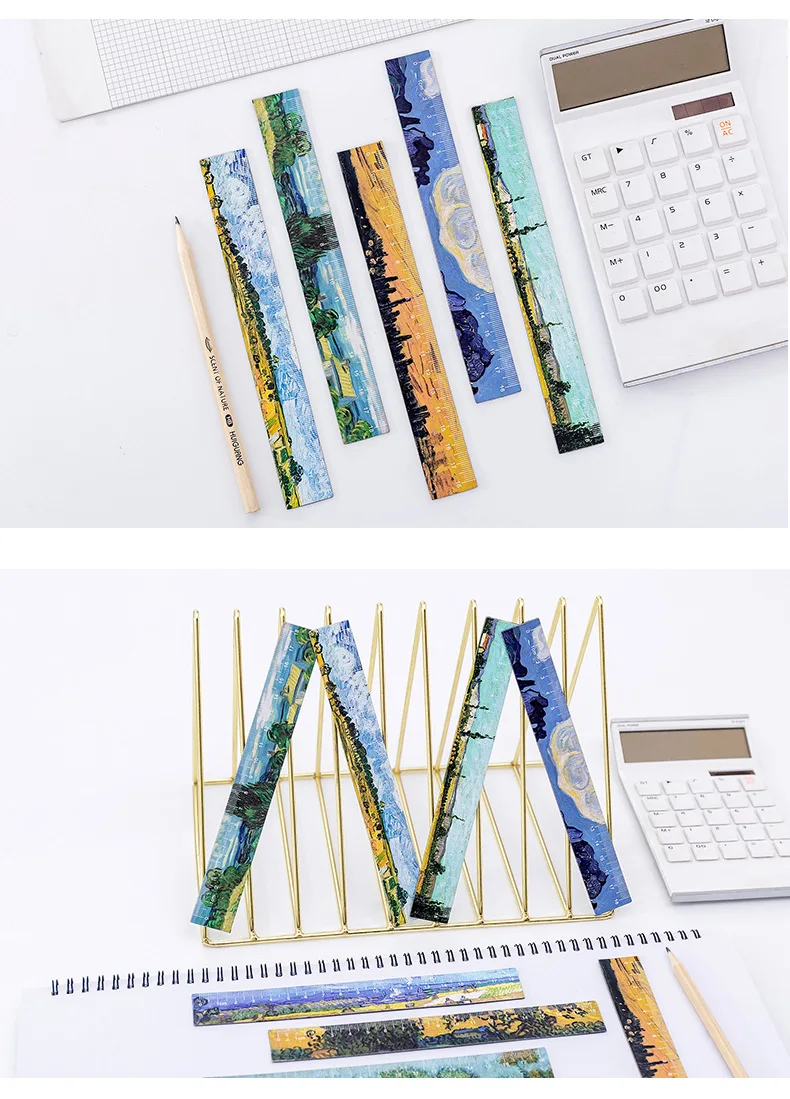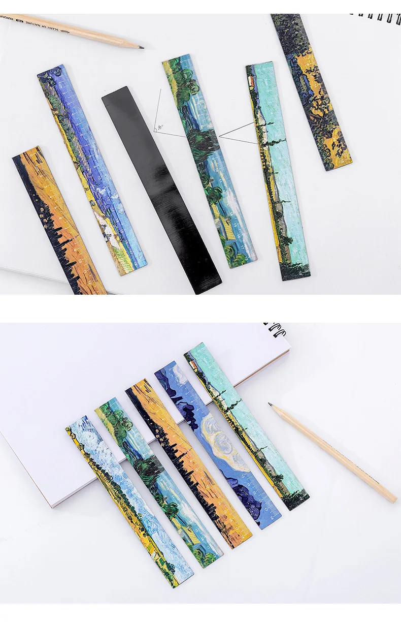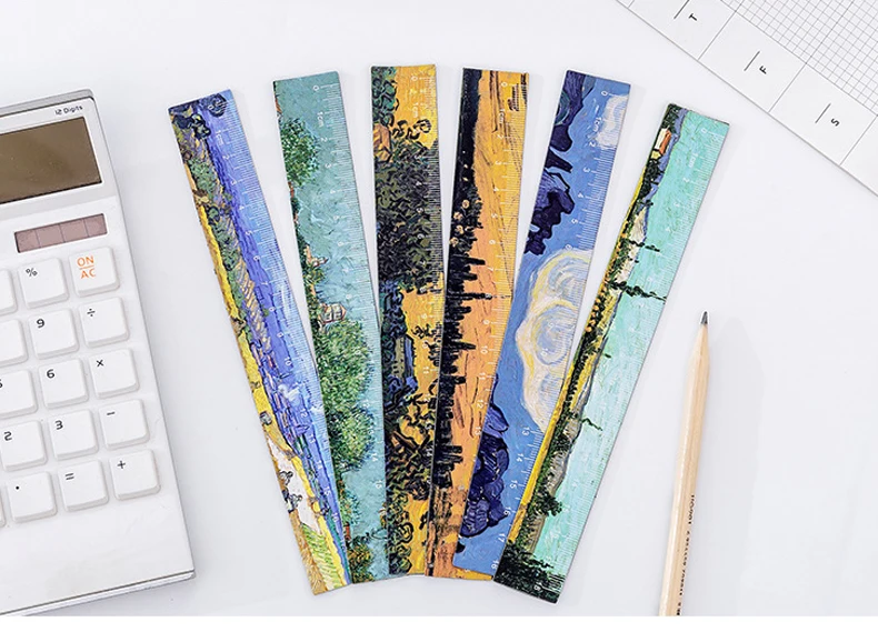 1PC Literary Van Gogh Straight Rulers Retro Painting Rulers For Childrens Girls Gitt School Office Supplies Measure Stationery
