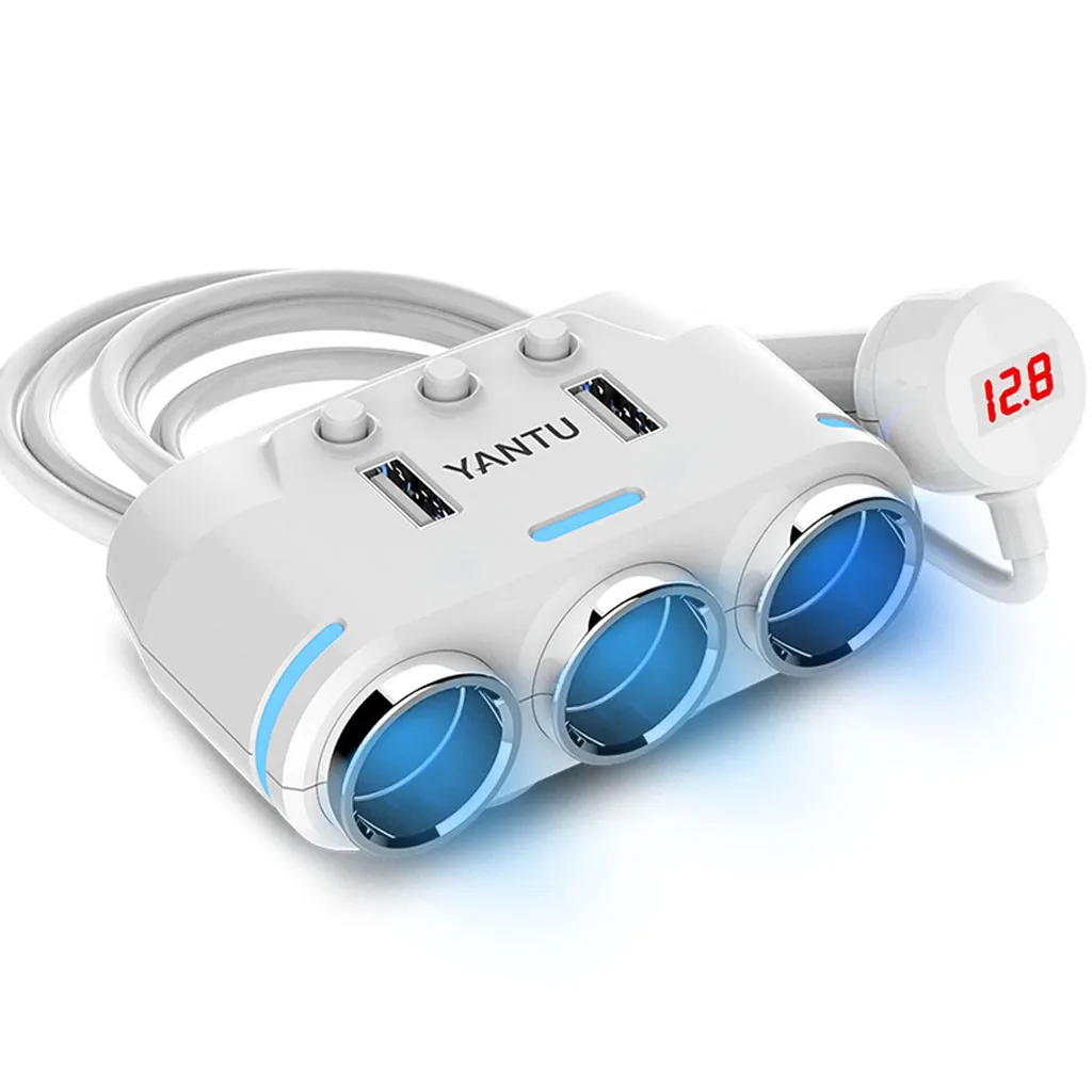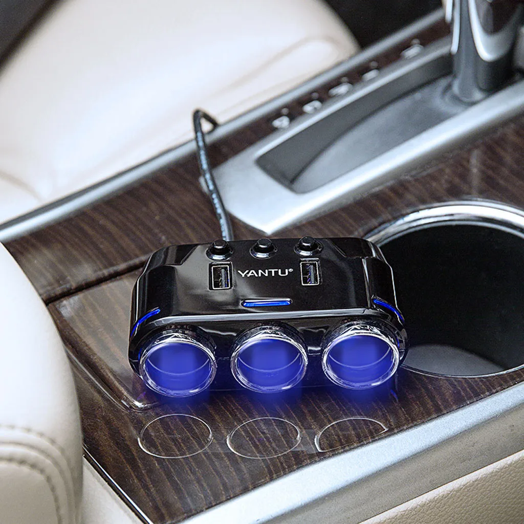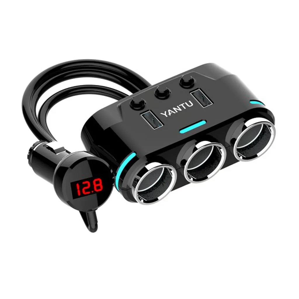 - 3 прикуривателя гнездо зарядки, 2 порта USB для зарядки. Этот адаптер преобразует из 1 гнезда в 3 гнезда плюс два usb-порта для зарядки, что позволяет одновременно заряжать до 5 устройств.