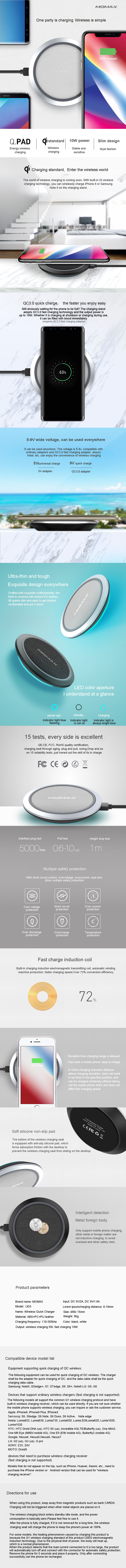 1. Q. PAD yuanqi Беспроводная подставка для быстрой зарядки QI стандарт 10 Вт Мощность тонкий дизайн 5-9 в Беспроводная зарядка QC3.0 Быстрая зарядка сетка модное рабочее напряжение Беспроводная зарядка, бесконечная простота. Избавьтесь от дужки проволоки, поставьте именно заправку, просто и практично! 3. Стандарт зарядки QI, охватывающий беспроводной мир. Мир беспроводной зарядки на нас. С помощью встроенной технологии беспроводной зарядки Qi вы можете просто разместить iPhone8 или samsung Note8 на зарядном гнезде для беспроводной зарядки. 4. Быстрая зарядка QC3.0, чем быстрее вы наслаждаетесь расслаблением. Все еще с тревогой ждем, пока ваш телефон заполнится? Зарядное устройство оснащено технологией быстрой зарядки QC3.0, а выходная мощность достигает 10 Вт. Он может залить кровь в одно мгновенное время, независимо от того, заряжается ли он с выключенным экраном или заряжается во время игры.