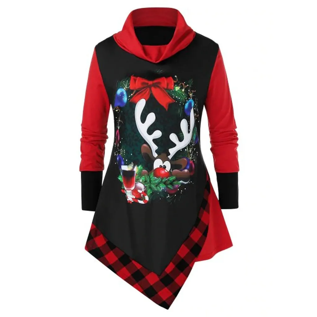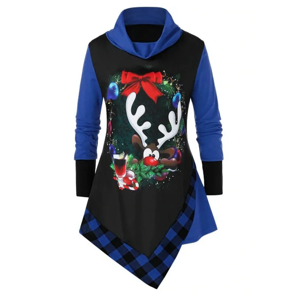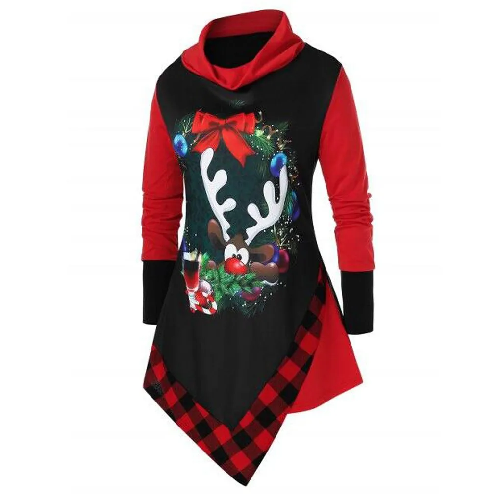 Женские толстовки с длинным рукавом и высоким воротником, рождественские топы с забавным принтом
