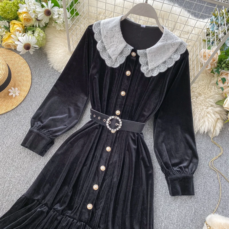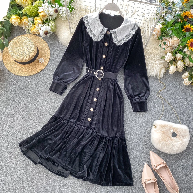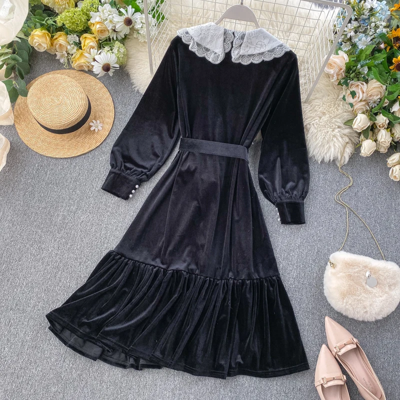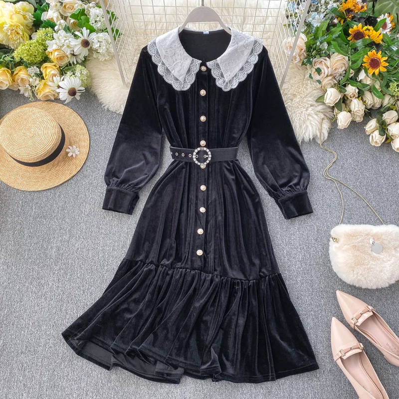 Милое кружевное бархатное платье с воротником Питер Пэн во французском стиле в стиле ретро; Женские осенние винтажные вечерние платья в стиле Одри Хепберн