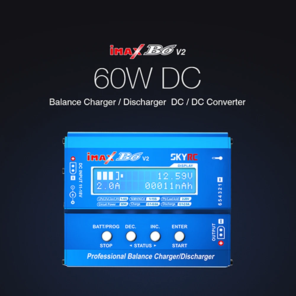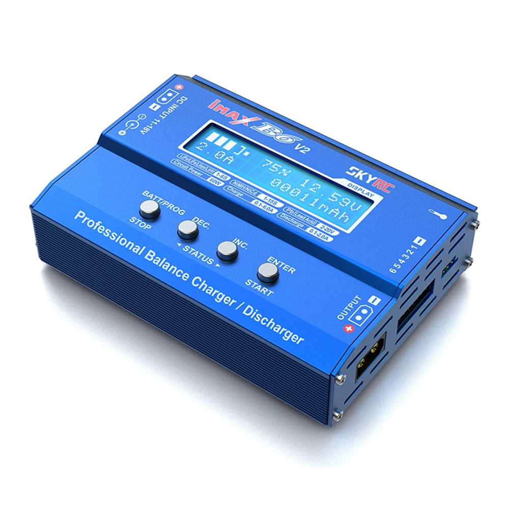 SkyRC B6 V2-это высокопроизводительный вход постоянного тока, микро-Преобразователь постоянного/постоянного тока с процессором, с управлением аккумулятором, подходит для всех основных типов батарей (LiPo / LiFe/li-ion/LiHV / NiMH / NiCd / Pb). В
