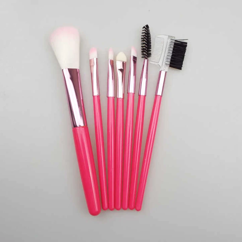 7 шт ярко-розовый набор косметических кистей для макияжа Красота Инструмент ресниц тональный крем пудра, кисть для теней на веки блеск для губ с золотого цвета из искусственной кожи сумка
