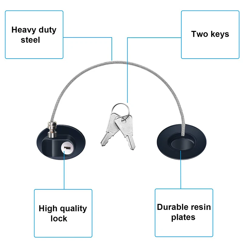 Прочный материал: внешняя отливка замка сделана из пластика, стальная проволока соединена на обоих концах, а внутренняя конструкция замка также сделана из стали, достаточно прочный и безопасный для домашнего использования
