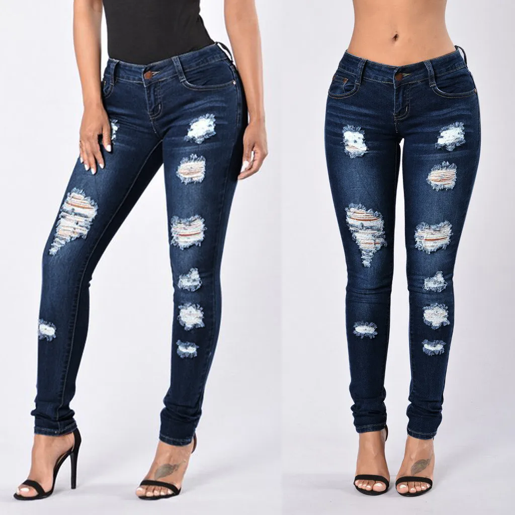 3. Стиль: модный и повседневный Отверстие Джинсовая тканьБрюки