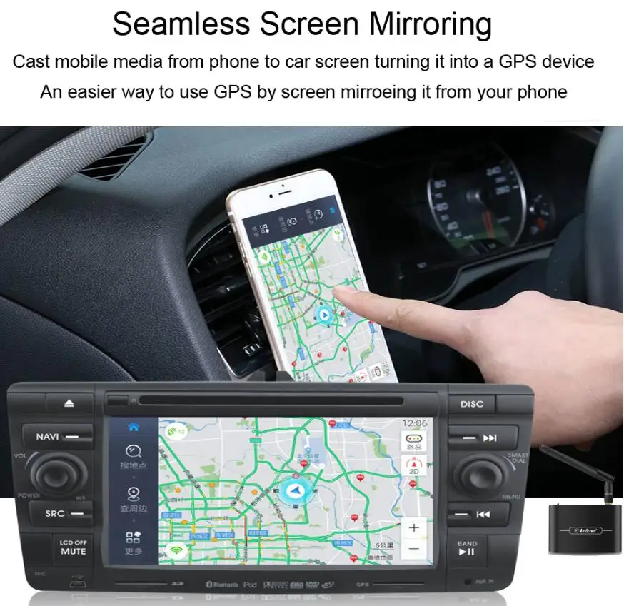 Поддерживает беспроводной передачи аудио и видео высокой четкости, 1080P выход с интерфейсом HDMI. Подходит для автомобильного дисплея. Использует компактный портативный соизволил для удобной переноски.