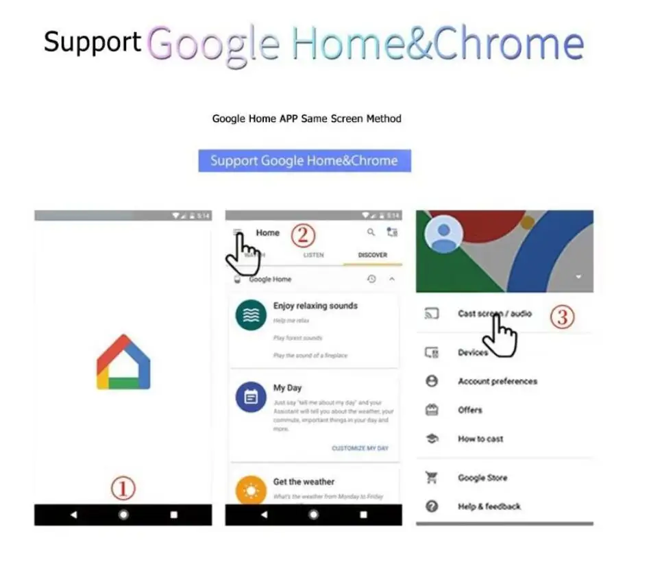 Примечание 1: Пожалуйста, убедитесь, что ваш смартфон и планшетный ПК с поддержкой Miracast, обмена потоковыми мультимедийными данными (Airplay) функция, прежде чем совершать покупку.
