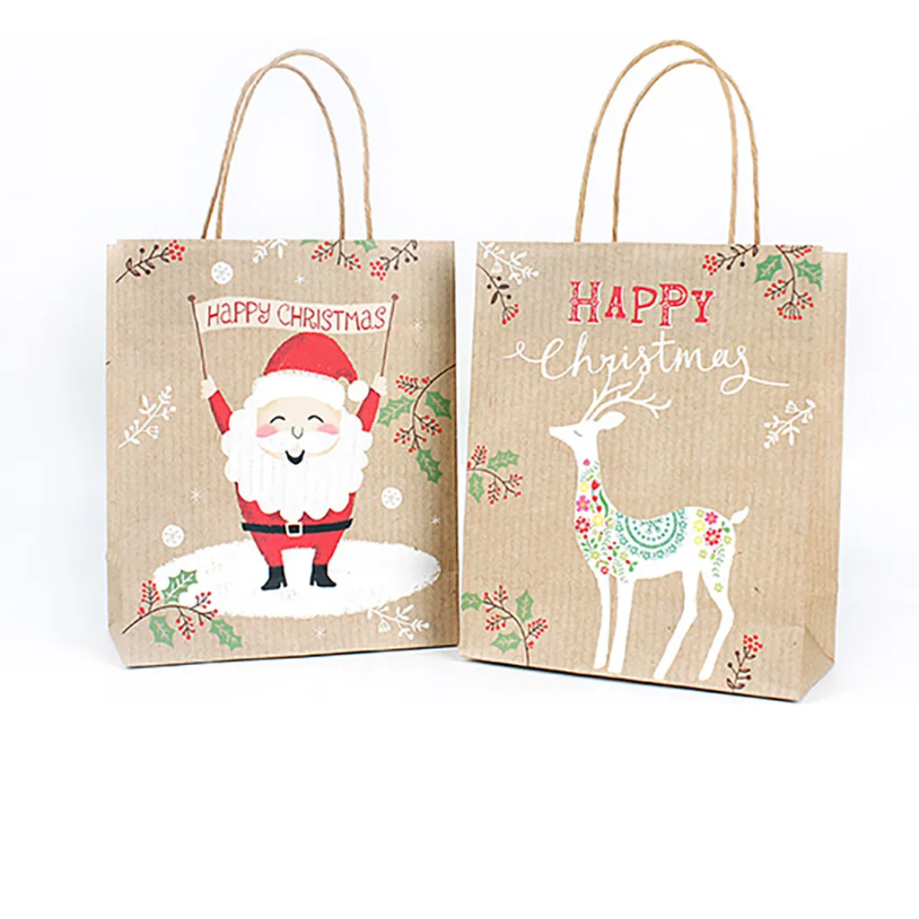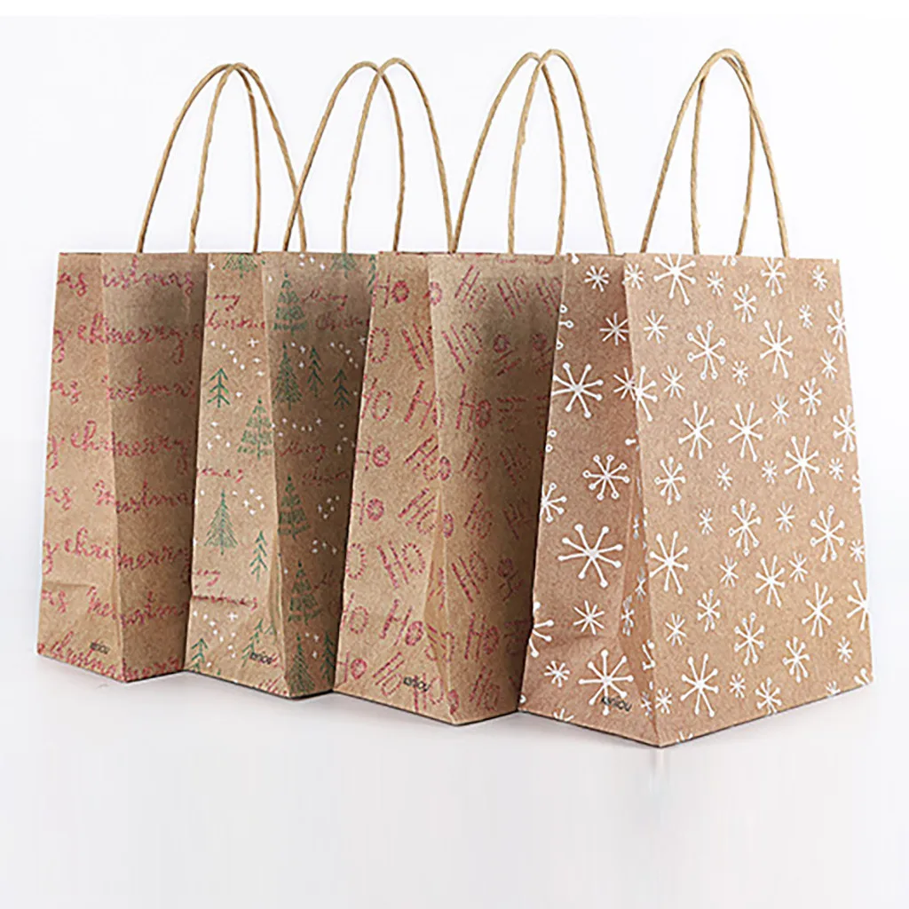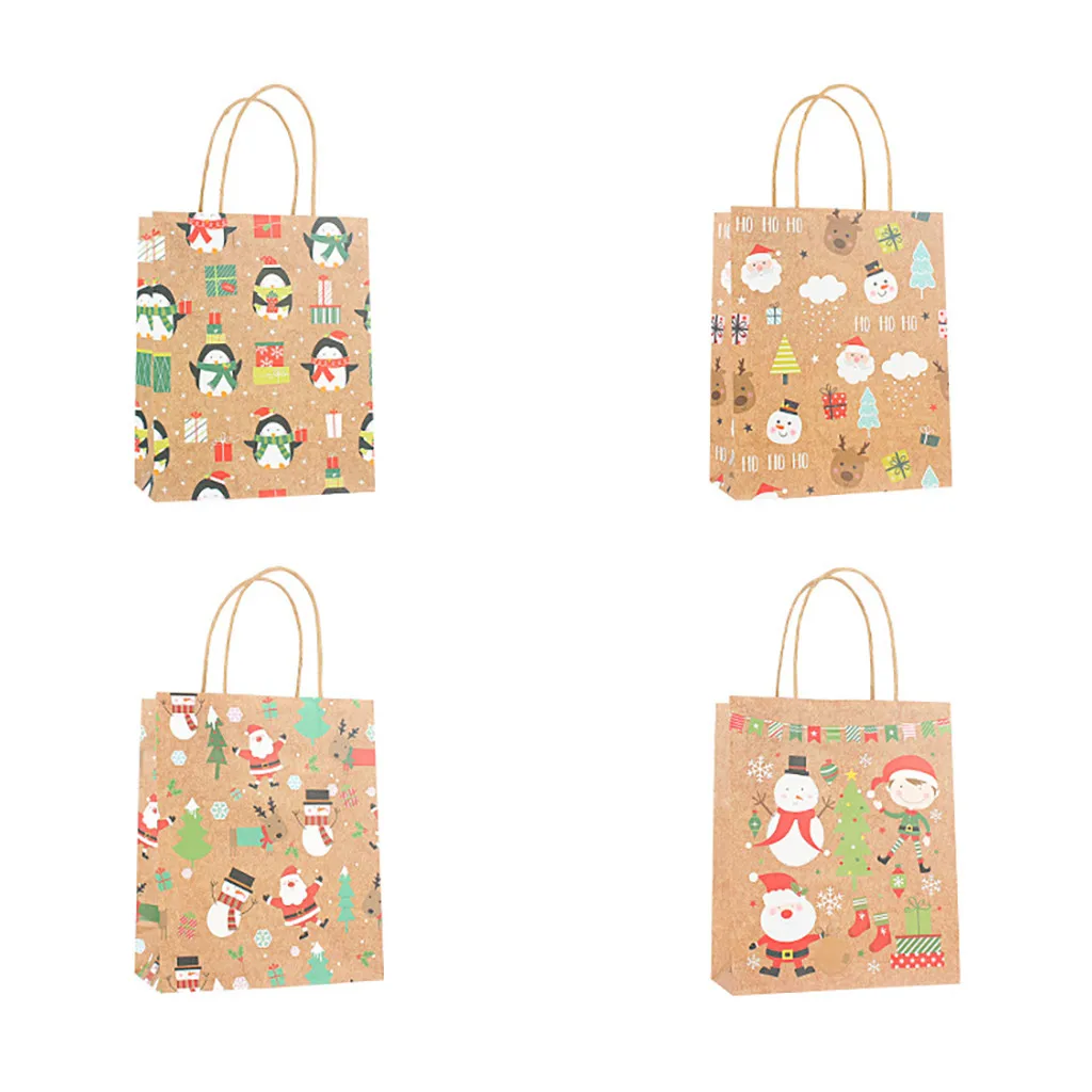 Рождественский Подарочный пакет, бумажный пакет, упаковка, крафт-бумага, нижняя сумка, 4 шт