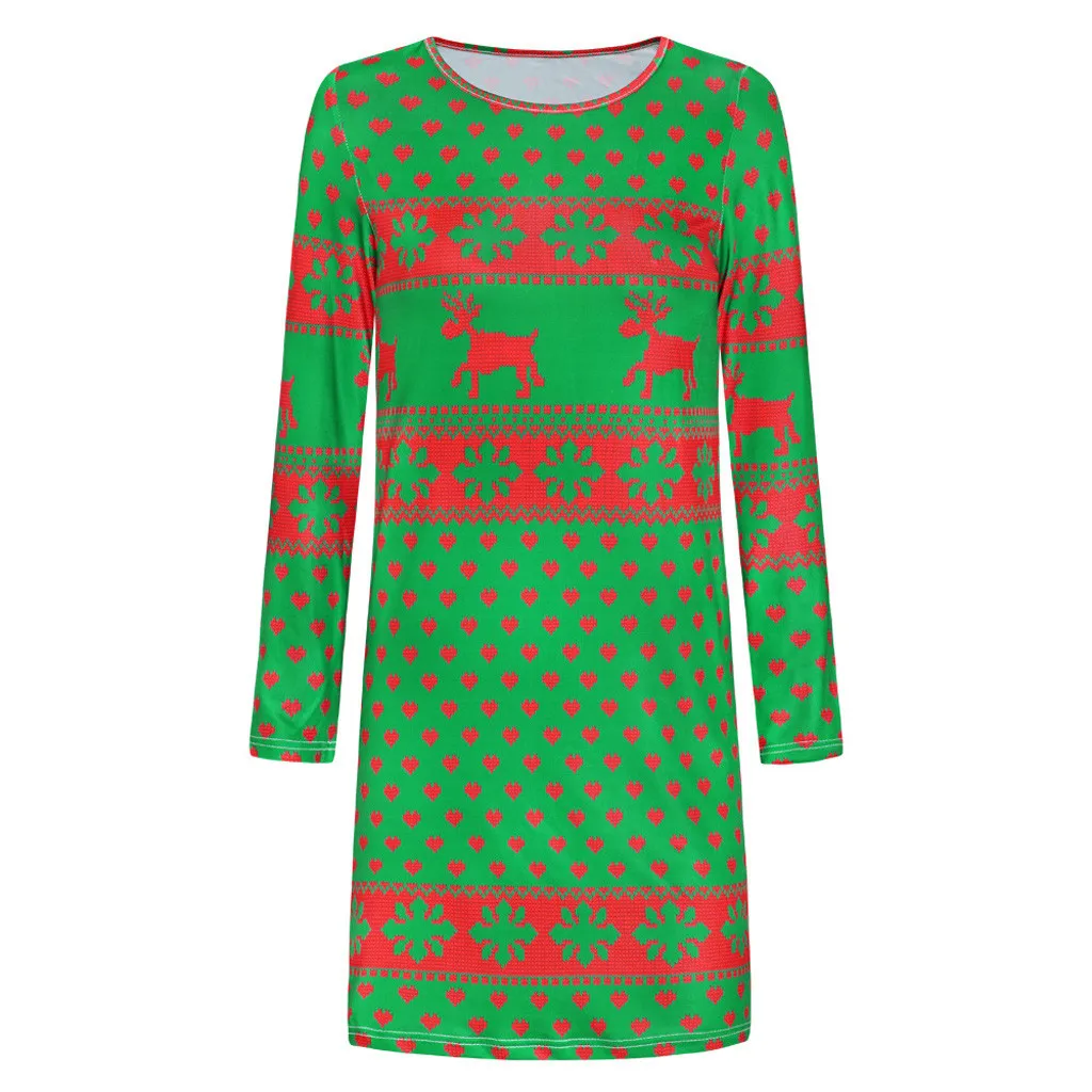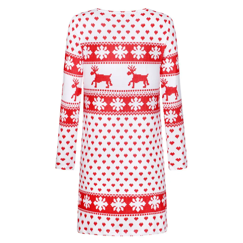 Женское рождественское платье с круглым вырезом и принтом снежинок, вечерние платья до колена с длинным рукавом