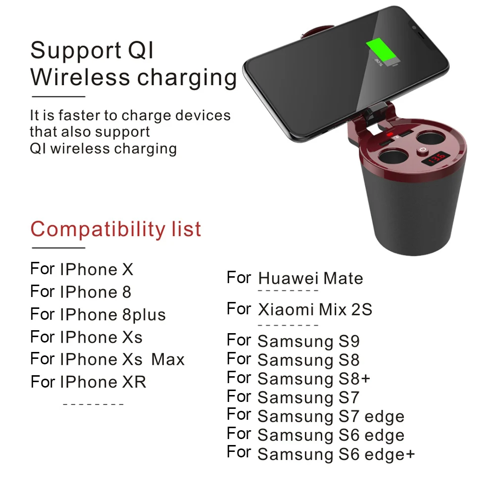 Это автомобильное зарядное устройство имеет умный дизайн, не занимает место в автомобиле. Обеспечивает беспроводную зарядку, автоматическое распознавание и индукционную зарядку. Может быть одной рукой, процесс вождения также может быть одноручным, чтобы взять, сделать вождение более безопасным.