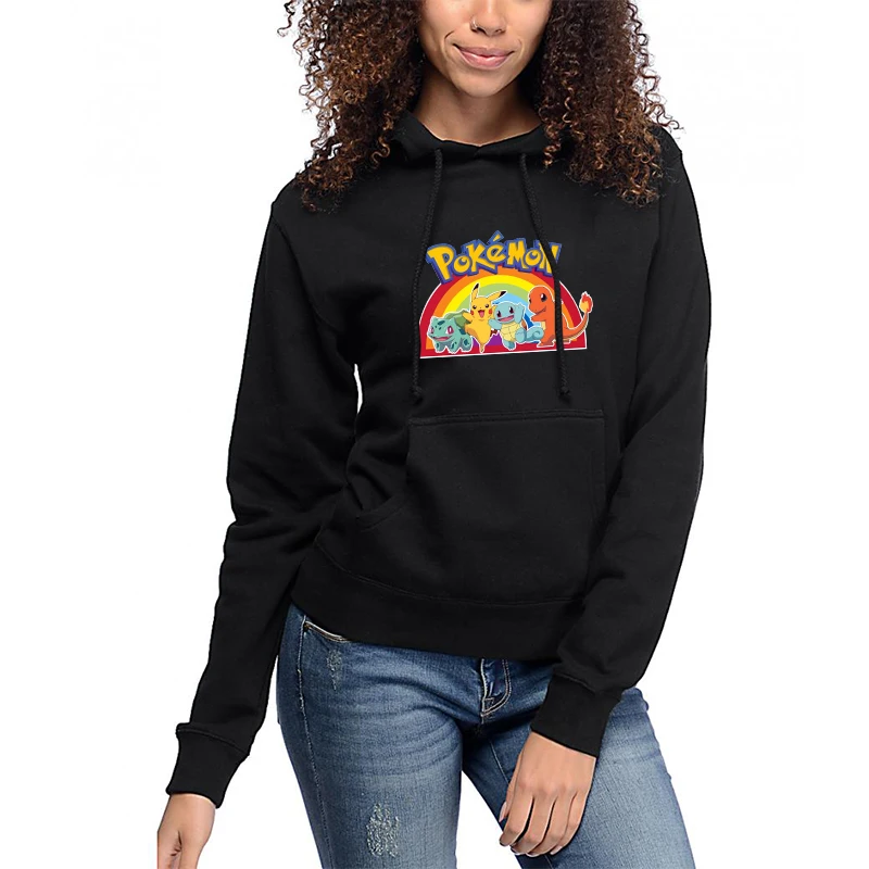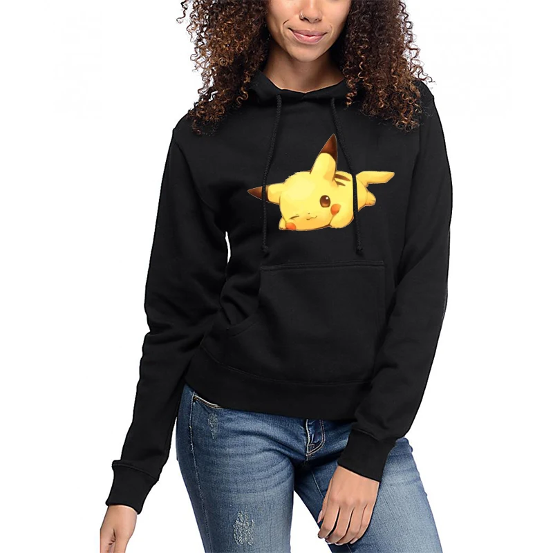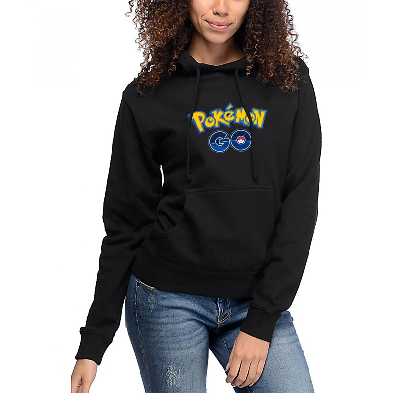 Женская толстовка с принтом Pokemon Go, пикачауф, черные зимние топы, Повседневная хлопковая модная Толстовка для подростков, новинка 2019