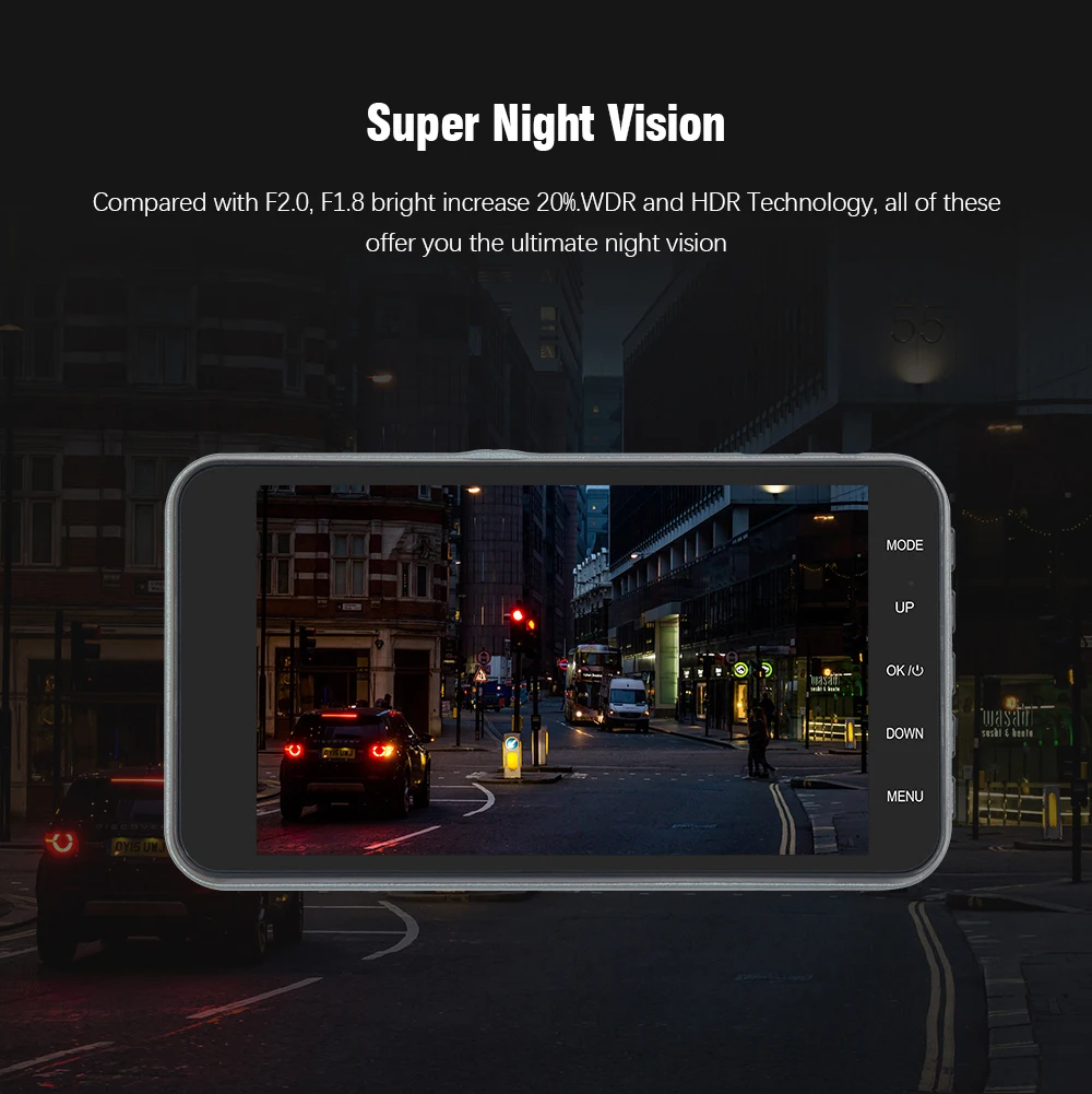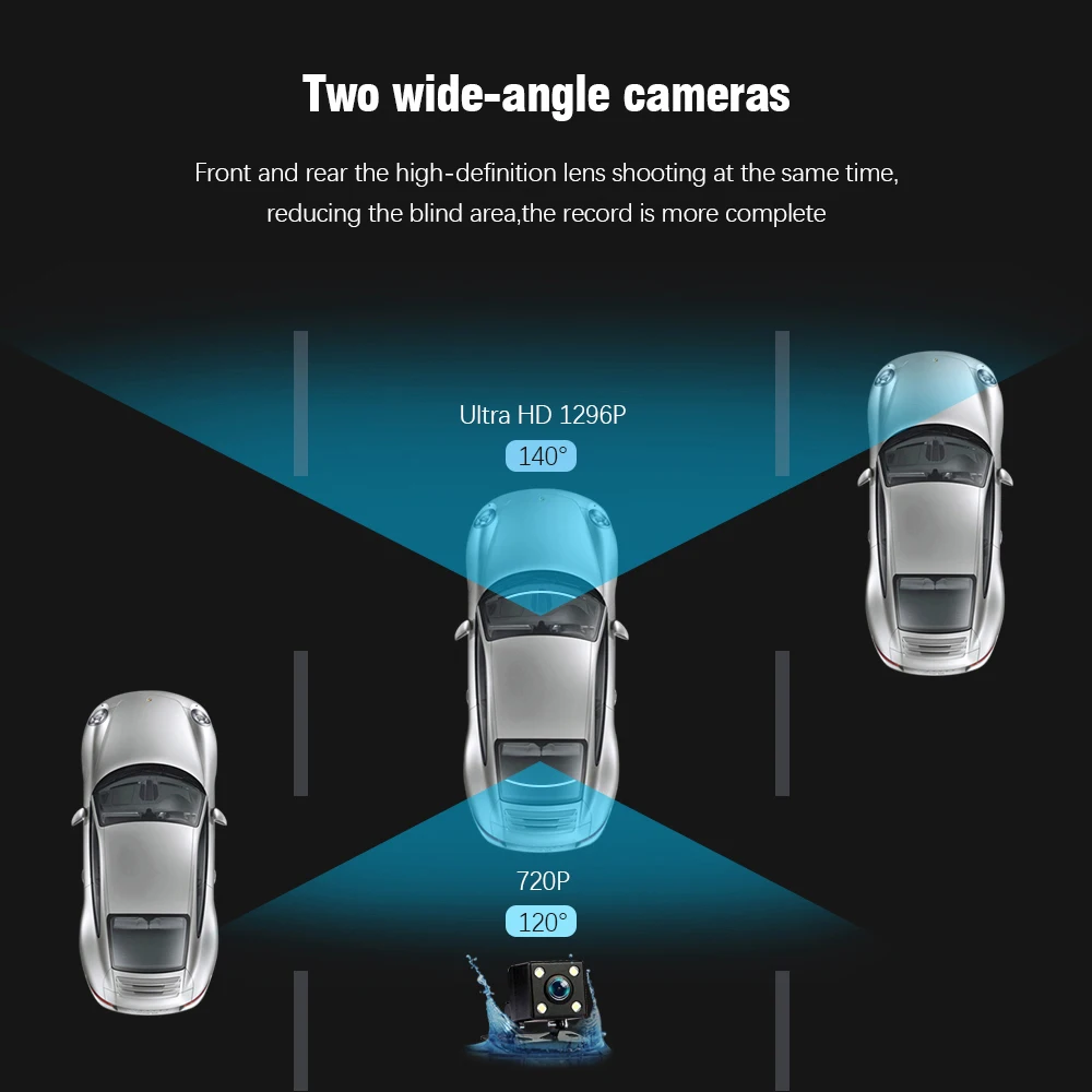 ✡Разрешение 2304x1296P Full HD, четкая запись. ✡Широкоугольный объектив 170 градусов, может закрывать 4 полосы перед автомобилем. ✡Технология WDR и Диафрагма F/2,0, повышают производительность записи видео в ночное время. ✡3-осевой g-сенсор, автоматически блокирует текущее видео при обнаружении столкновения. ✡Бесшовная циклическая запись, автоматически перезаписывает самое раннее разблокированное видео. ✡Монитор парковки, обеспечивает 24-часовой мониторинг в режиме парковки. ✡Усовершенствованная технология сжатия H.264 обеспечивает высокое качество видео. ✡Поддержка памяти до 32 Гб TF карты. ✡Рабочая температура-20 ℃ ~ 70 ℃