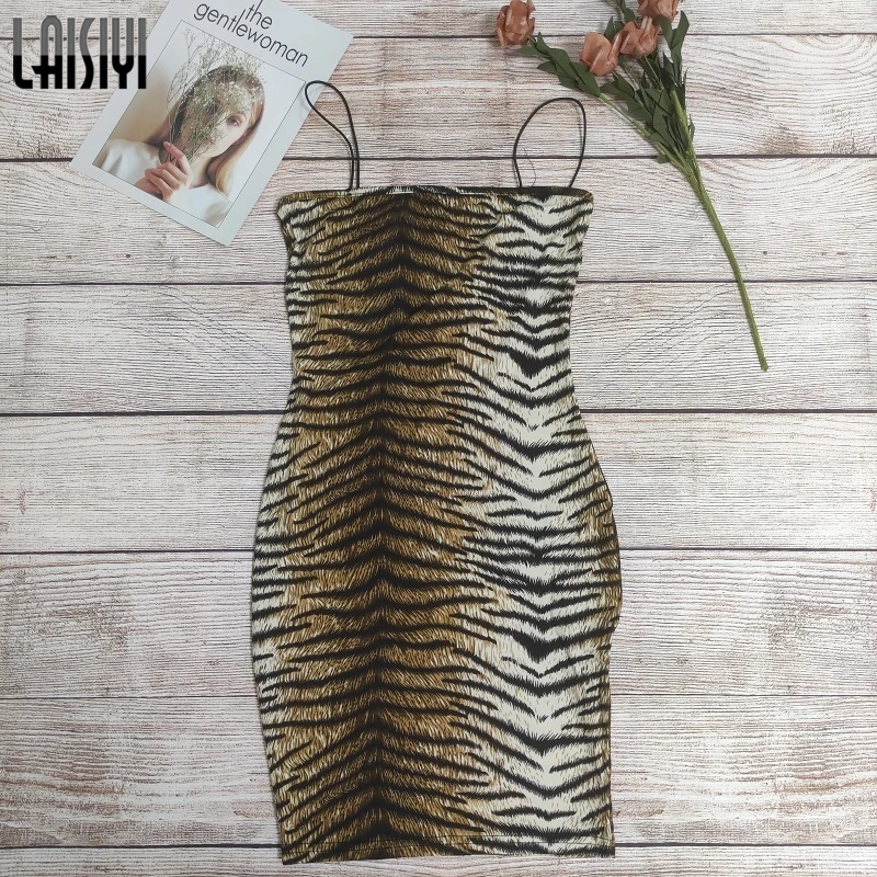 Женское леопардовое мини-платье на тонких бретельках LAISIYI, вечерние Клубные платья без рукавов на лето и осень