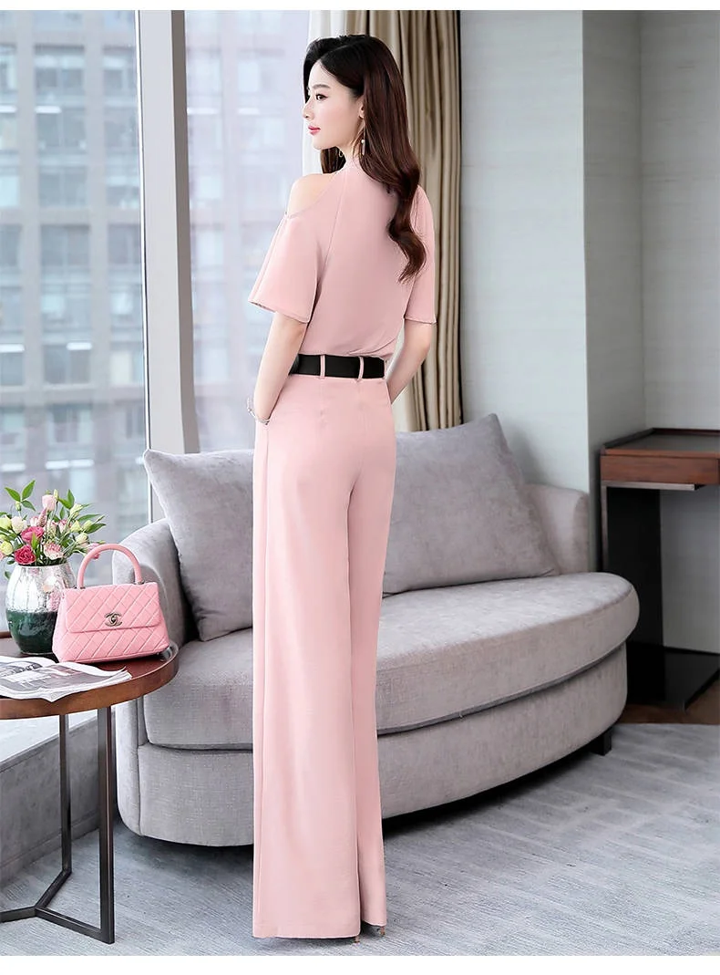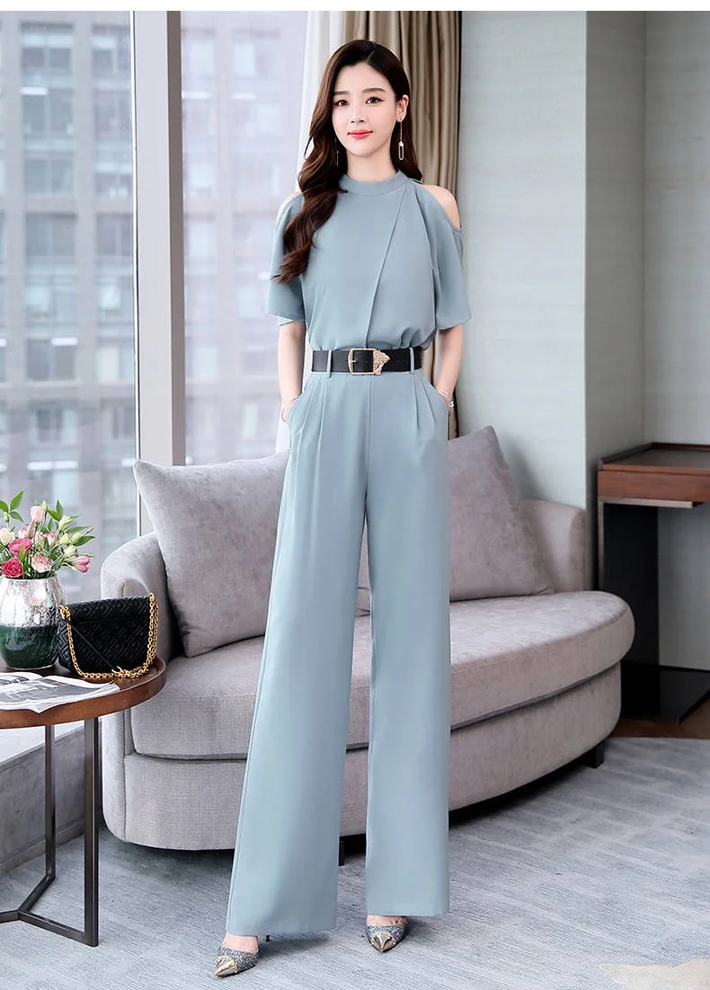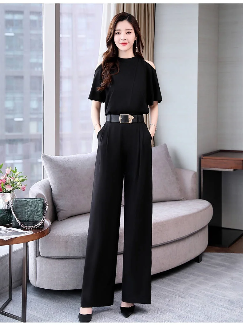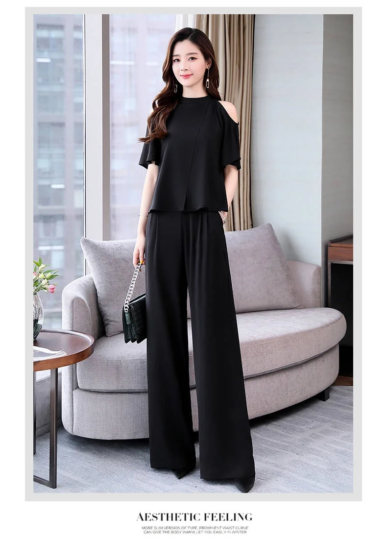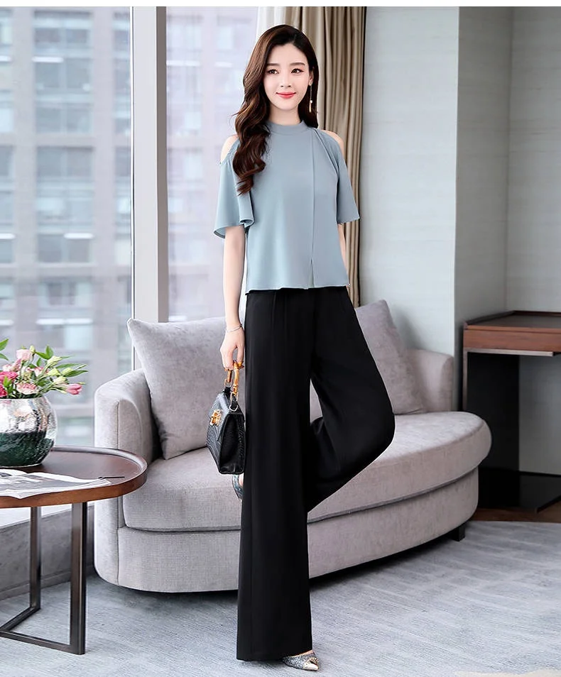 Лето 2020 Новый женский комплект из двух предметов, элегантные топы, блузка и женские широкие брюки, брюки, костюм AE851