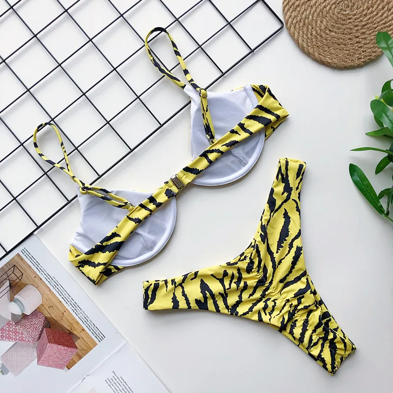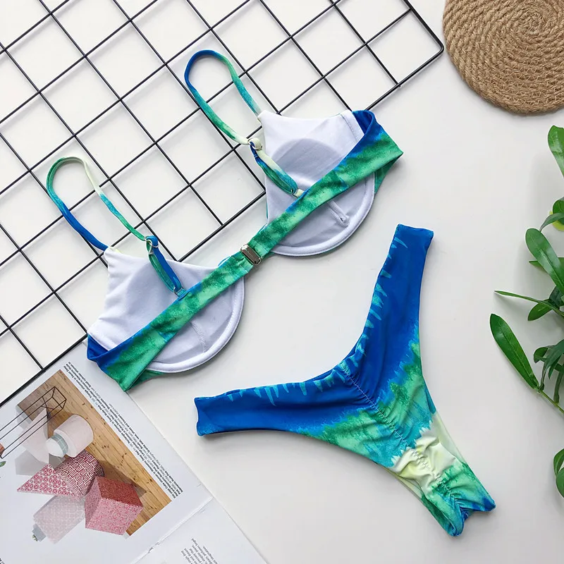 Летний женский однотонный купальник пуш ап на бретельках Бразильское бикини с