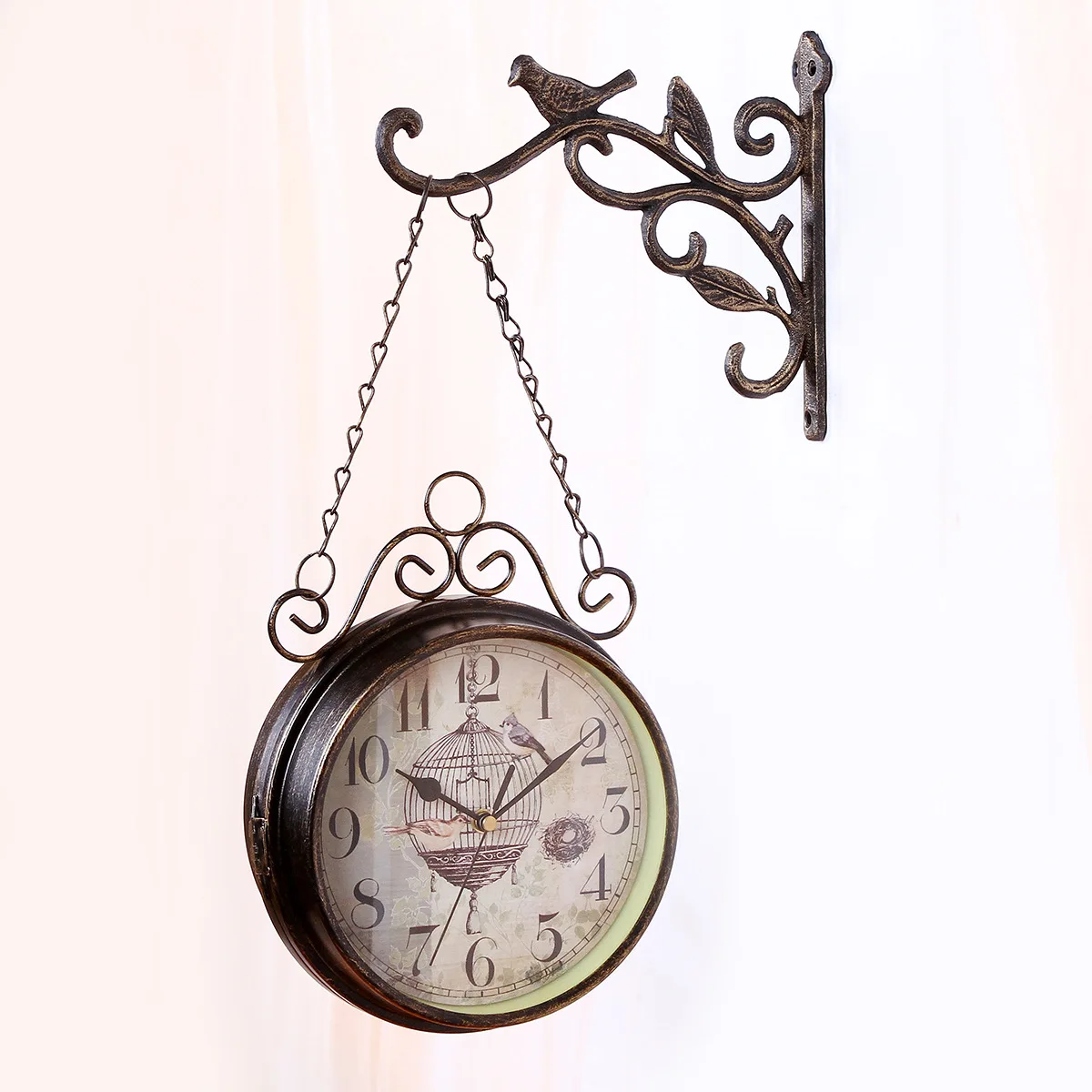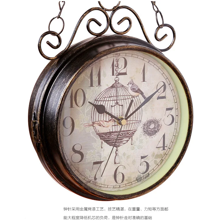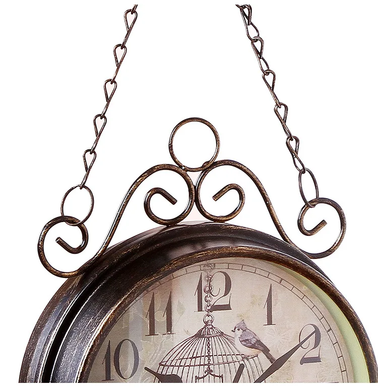 Ретро Двухсторонние настенные часы, простые бесшумные кварцевые часы, круглый из кованого железа, часы для гостиной, украшения дома